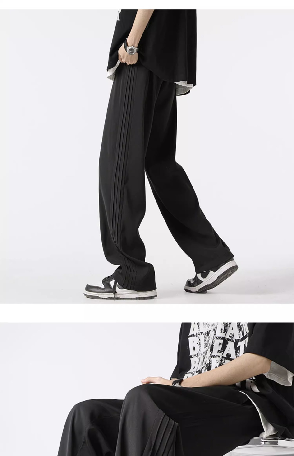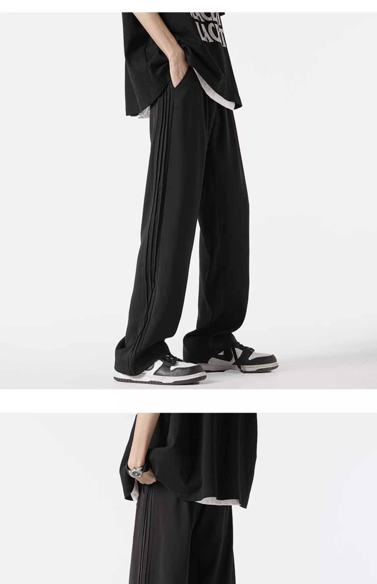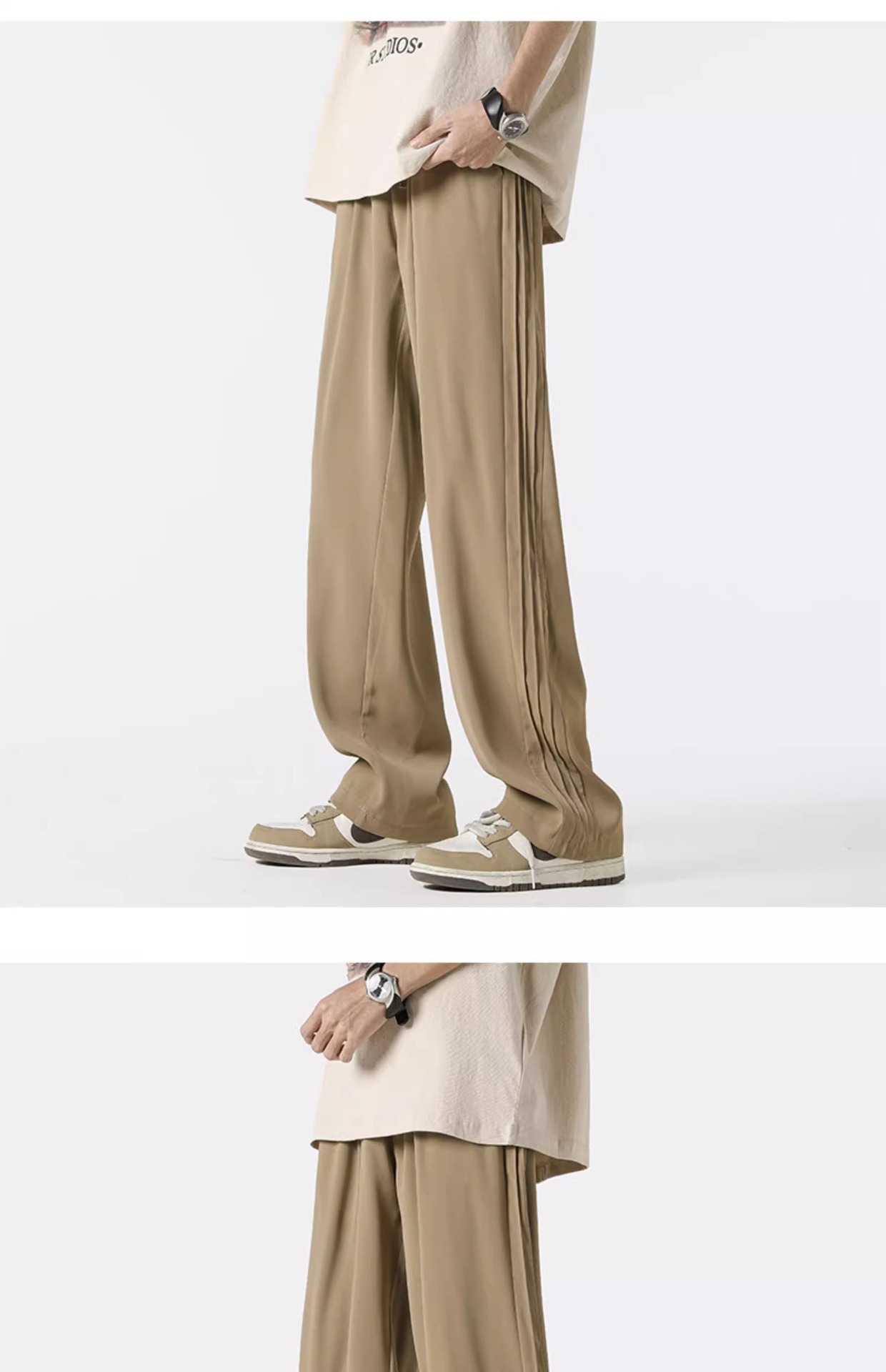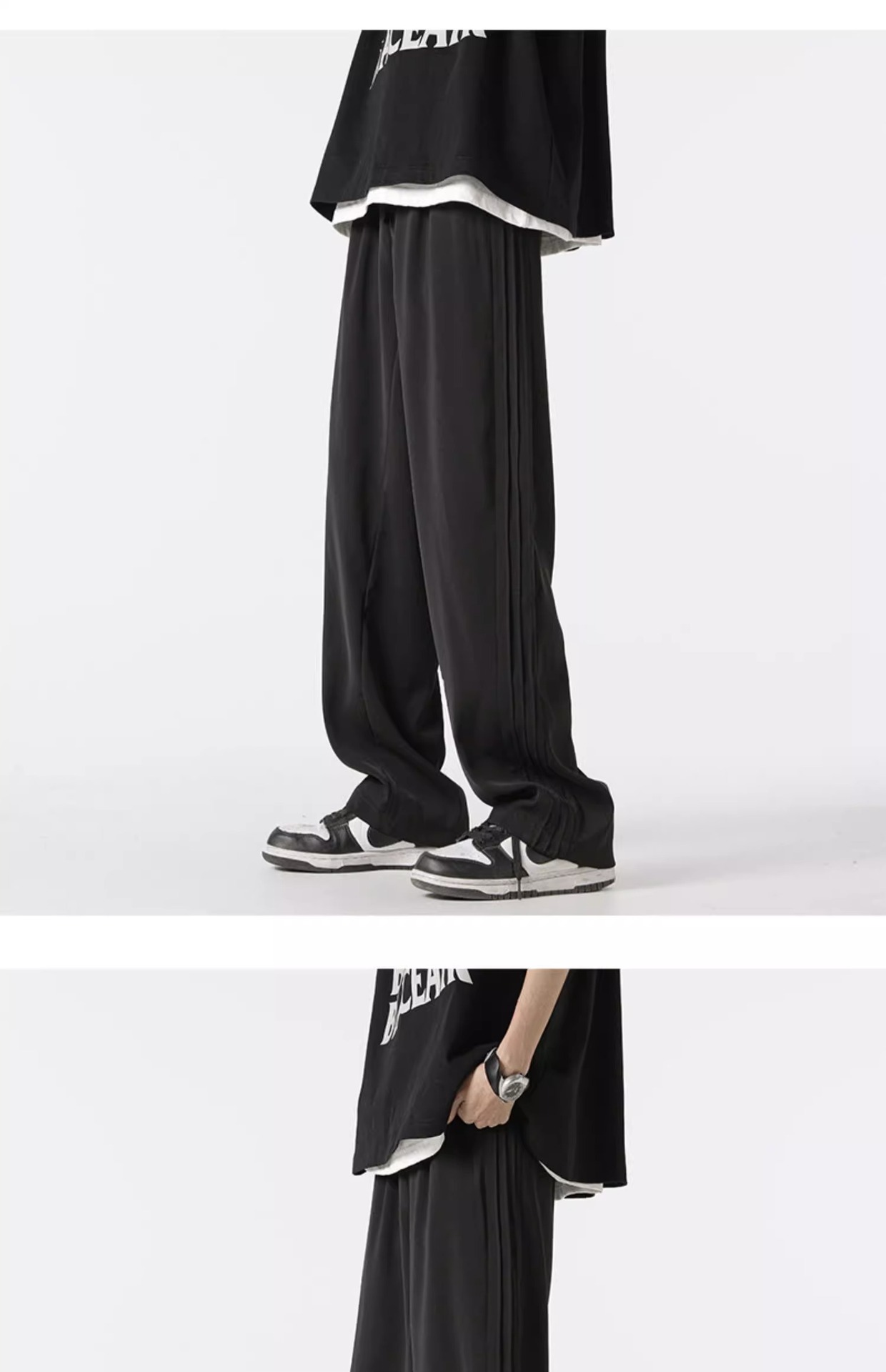 아메리칸 스타일 스트라이프 아이스 실크 팬츠 남성용 여름 트렌디 브랜드 하이 스트리트 세로 스트레이트 플로어 팬츠 와이드 루즈한 캐주얼 팬츠스토어 가기
