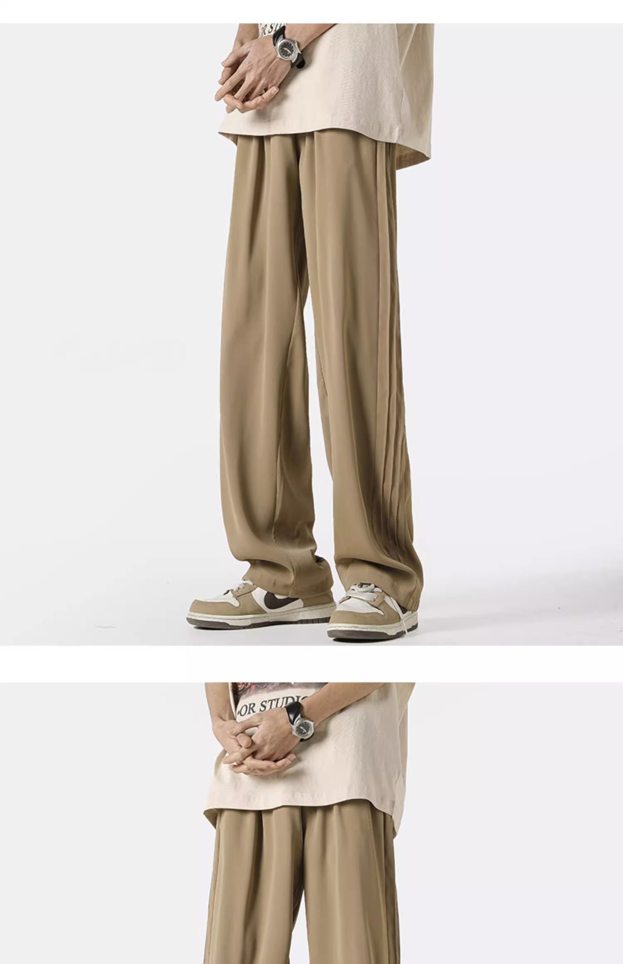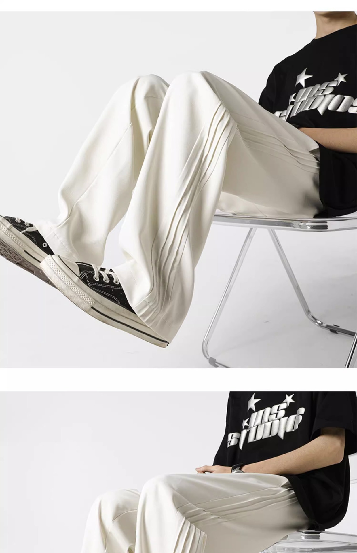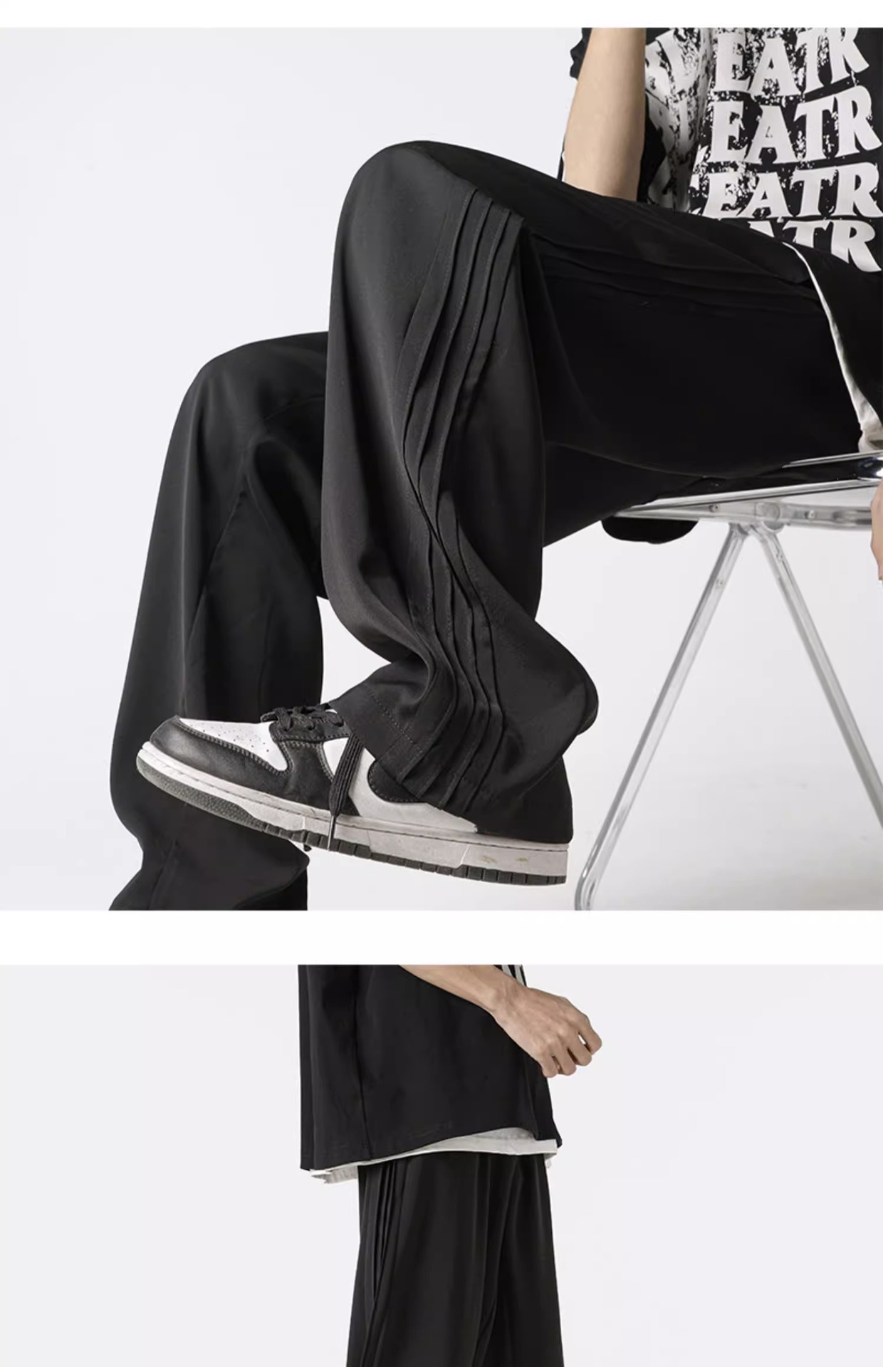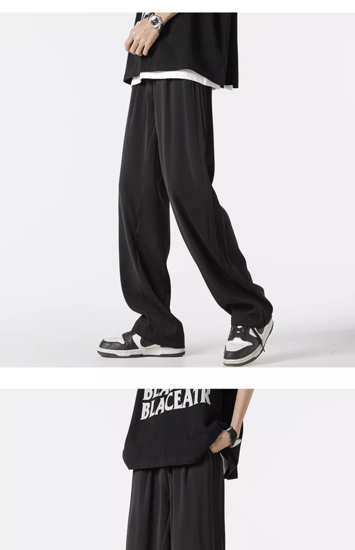 아메리칸 스타일 스트라이프 아이스 실크 팬츠 남성용 여름 트렌디 브랜드 하이 스트리트 세로 스트레이트 플로어 팬츠 와이드 루즈한 캐주얼 팬츠스토어 가기