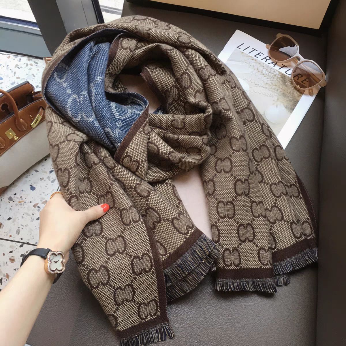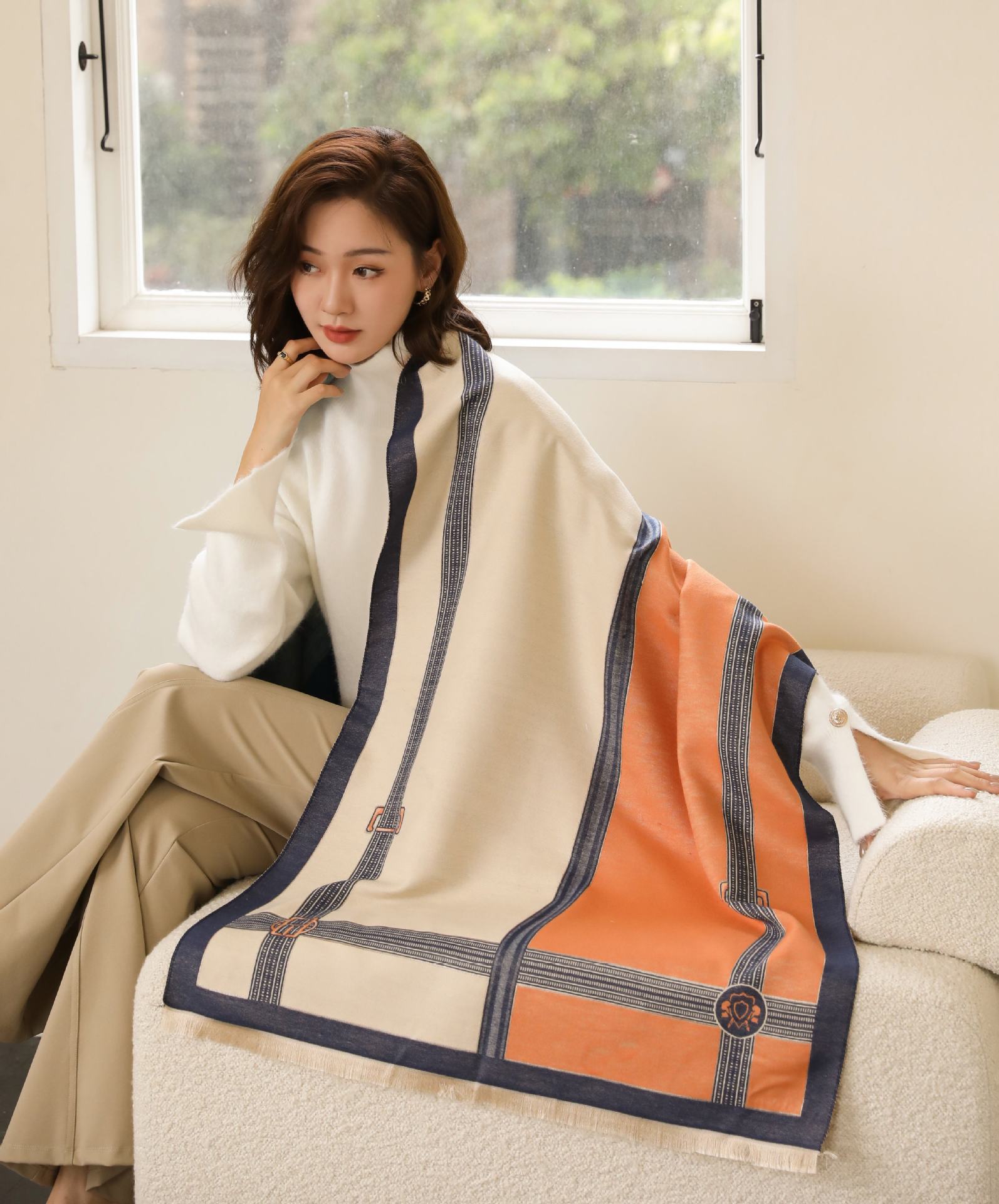여성의 2024 새로운 여름 사무실 스카프 이중 목적 어깨 패드 목 담요 고급 느낌 외부 에어컨 실 목도리