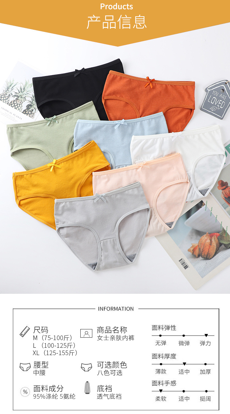 여자 속옷 여성 학생 한국 스타일 일본식 통기성 중간 허리 활 소녀 귀여운 섹시한 플러스 사이즈 바지