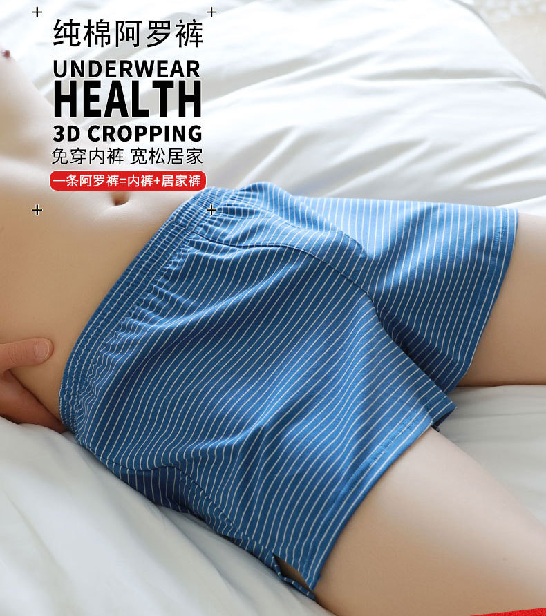 트렌디 브랜드 느슨한 알로 바지 남자의 여름 통기성 순면 플랫 반바지 청소년 스트라이프 플러스 사이즈 4 코너 홈 바지