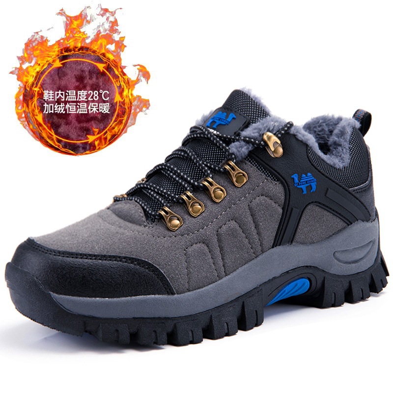 야외 하이킹 신발 남성과 여성의 신발 스포츠 캐주얼 신발 하이킹 미끄럼 방지 방수 내마모성 여행 신발 기모 면화 신발 플러스 사이즈