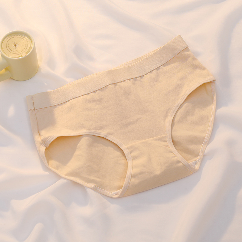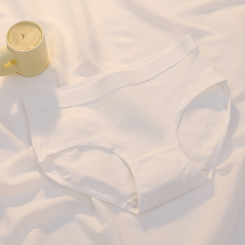 여성용 일본식 단색 면 중간 허리 심플 원활한 통기성 여아 플러스 사이즈 학생용 슬림핏 힙 브리프
