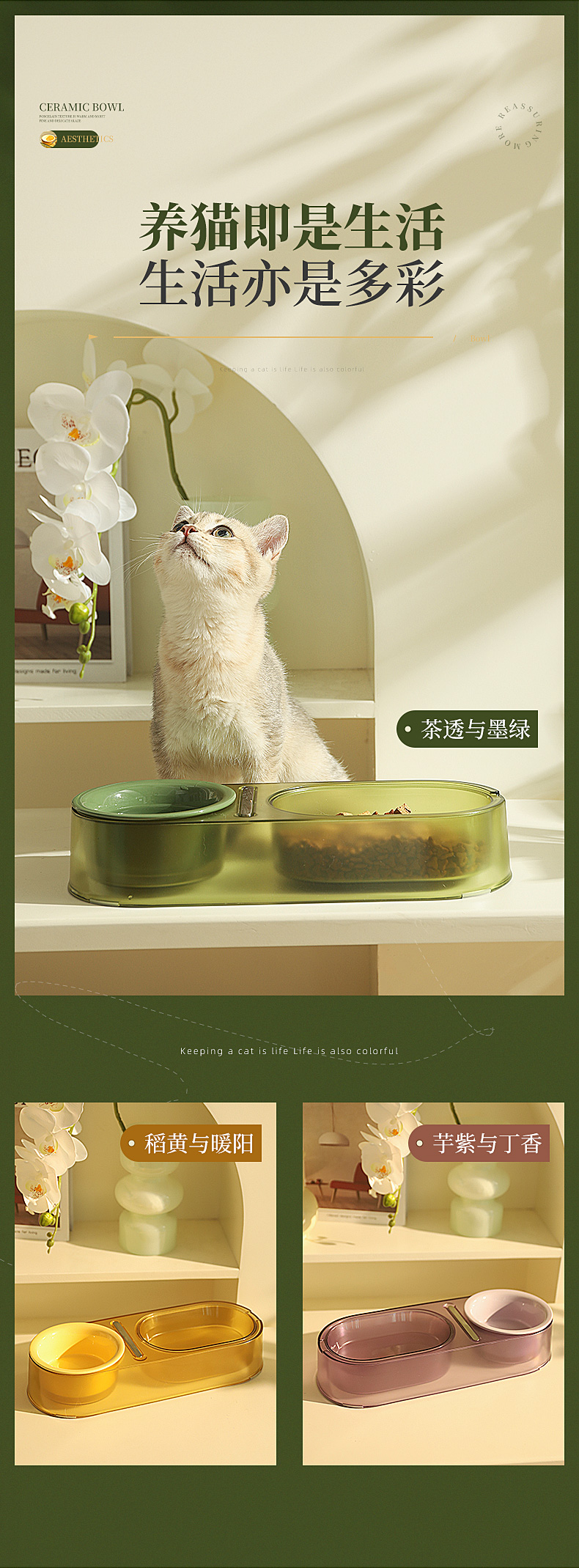고양이 그릇 세라믹 더블 그릇 음식 분지 물 그릇 개 쌀 분지 노크 방지 먹이 고양이 먹이 그릇 높은 목 보호 애완 동물 용품스토어 가기