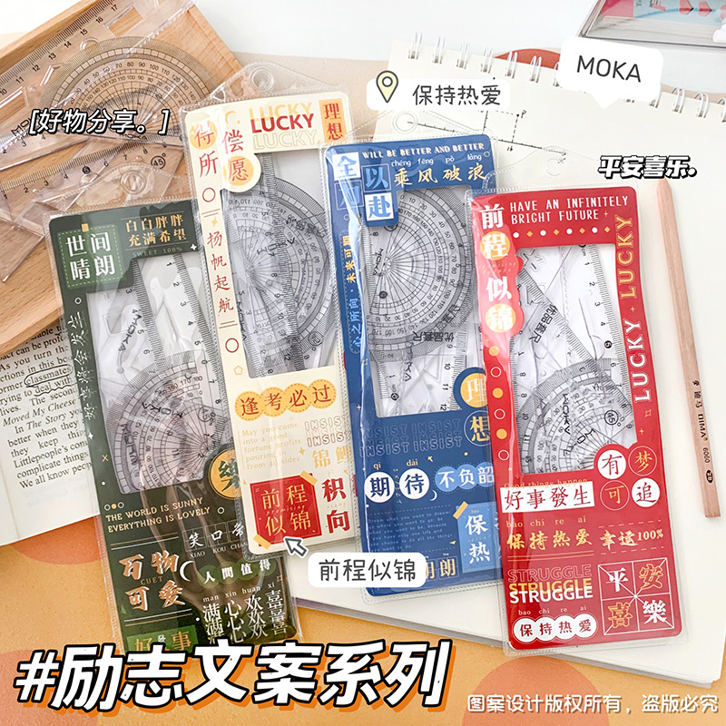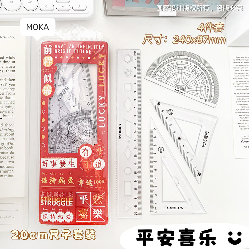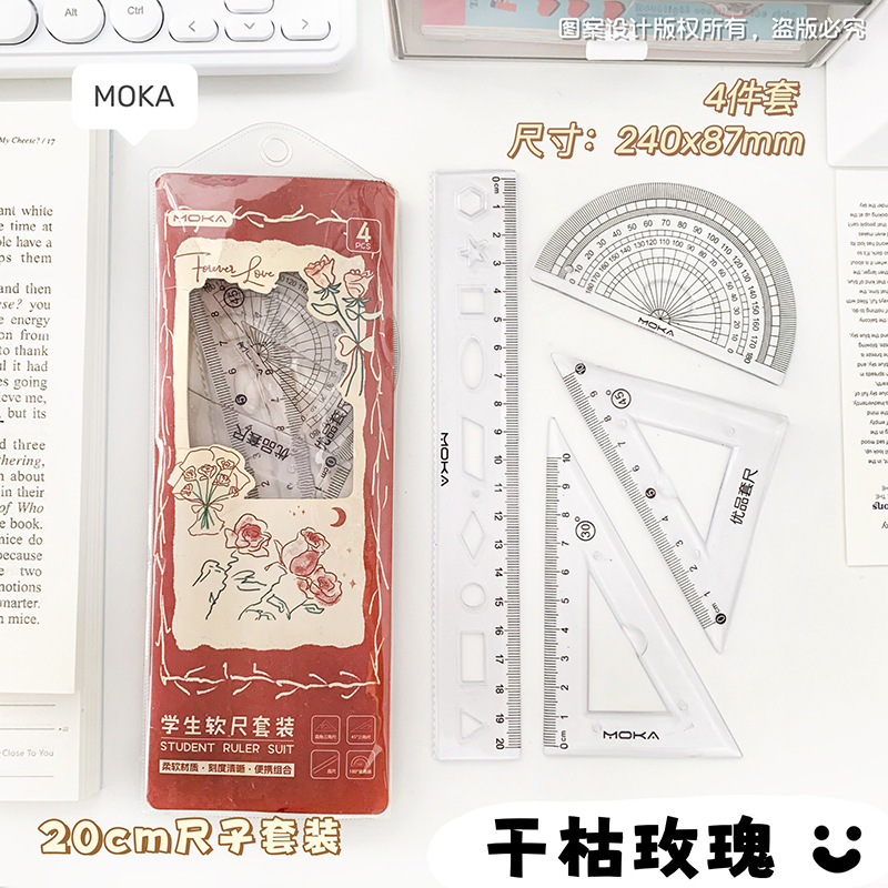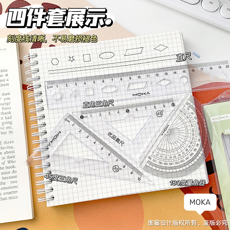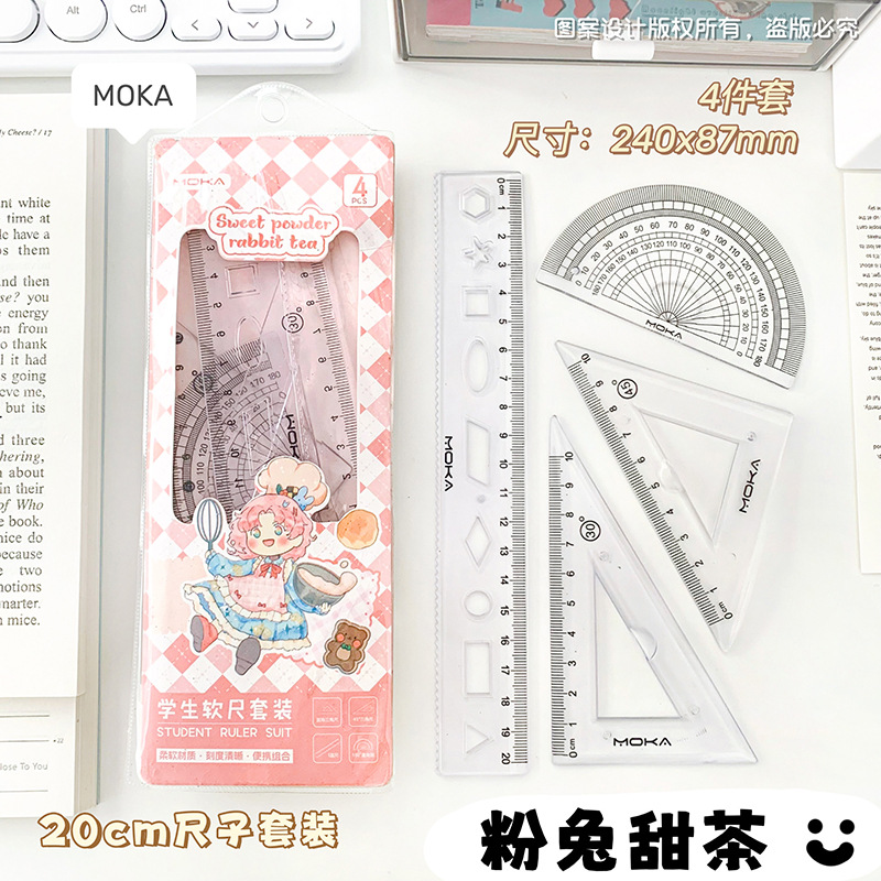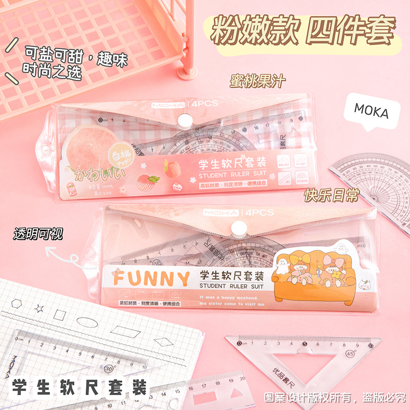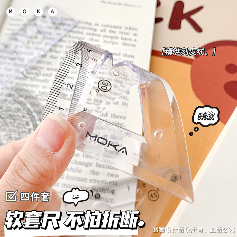 소프트 눈금자 4 피스 눈금자 삼각형 판 각도기 물결 눈금자 초등 학생 특별 세트 테스트 세트 눈금자스토어 가기