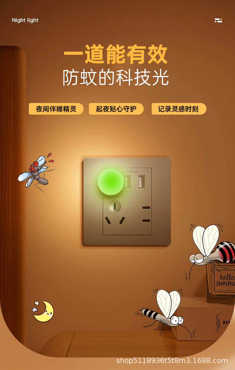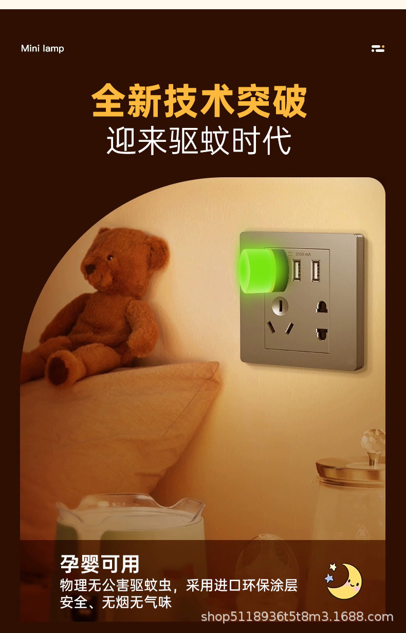 국경 간 폭발 모기 구충제 야간 조명 USB 인터페이스 미니 홈 침대 옆 엄마와 아이 눈 보호 야간 조명 CE 인증서스토어 가기