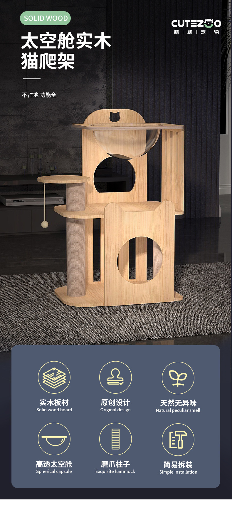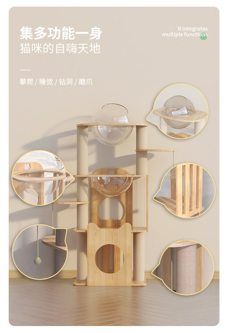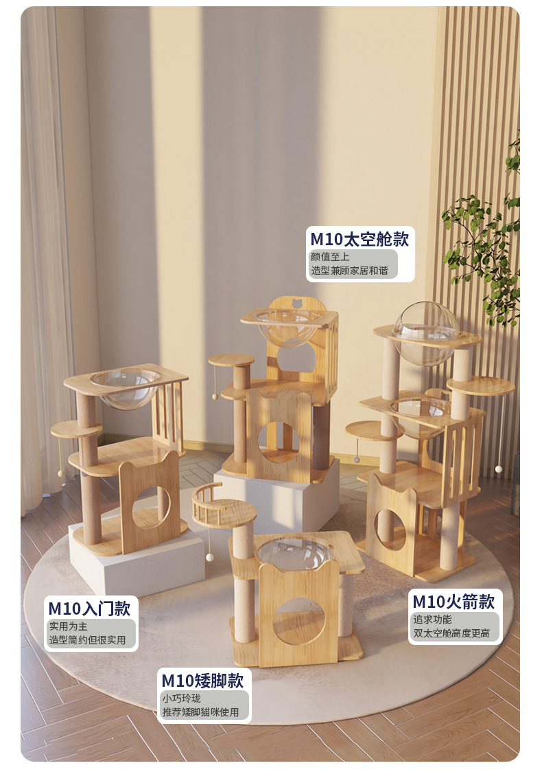 M 시리즈 고양이 스크래치 트리 스페이스 캡슐 고양이 선반 소형 고양이용 원목 고양이 선반 고양이 클라이밍 트리 고양이 집 고양이 나무스토어 가기