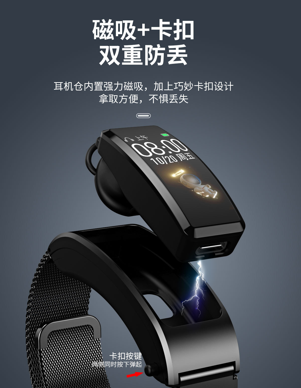 B7 스마트 콜 팔찌 블루투스 헤드셋 Typec 충전식 손목 분리 다기능 스포츠 블루투스 시계