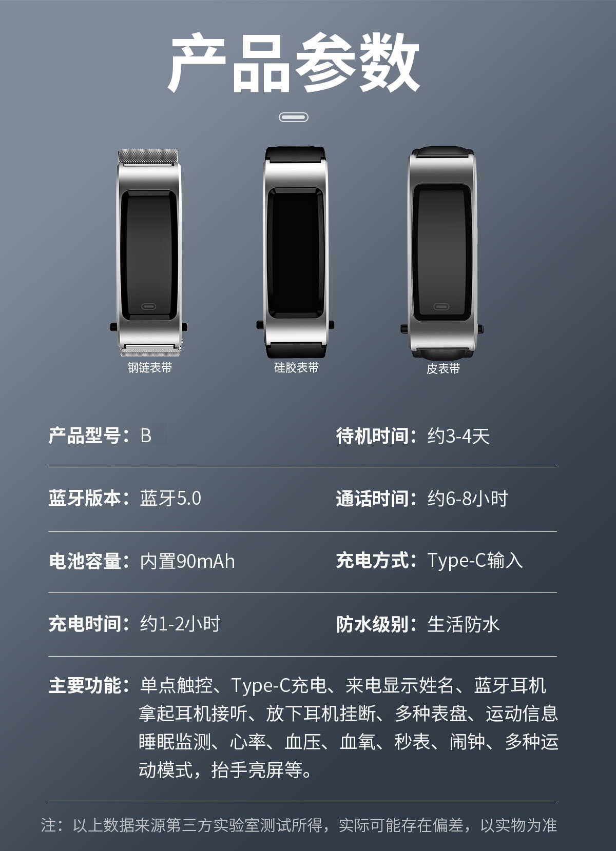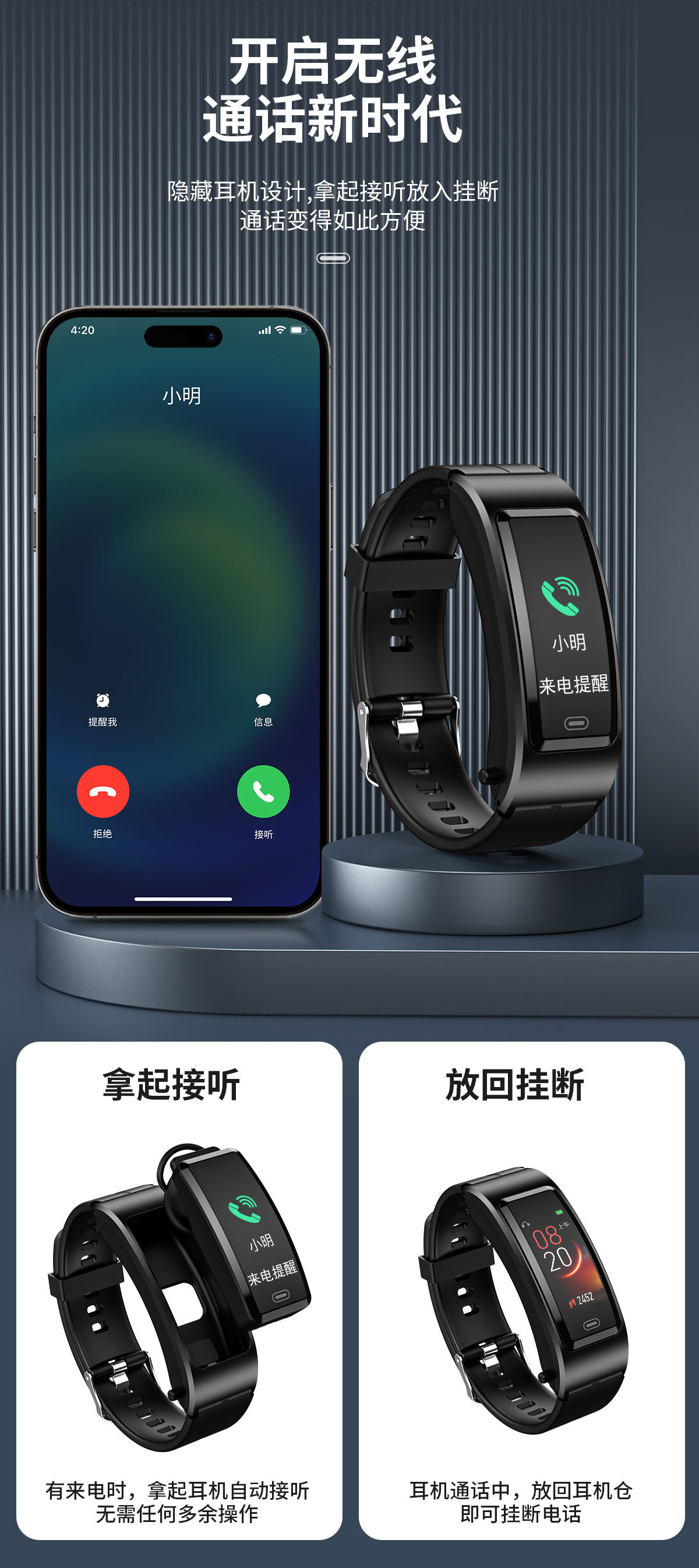 B7 스마트 콜 팔찌 블루투스 헤드셋 Typec 충전식 손목 분리 다기능 스포츠 블루투스 시계스토어 가기