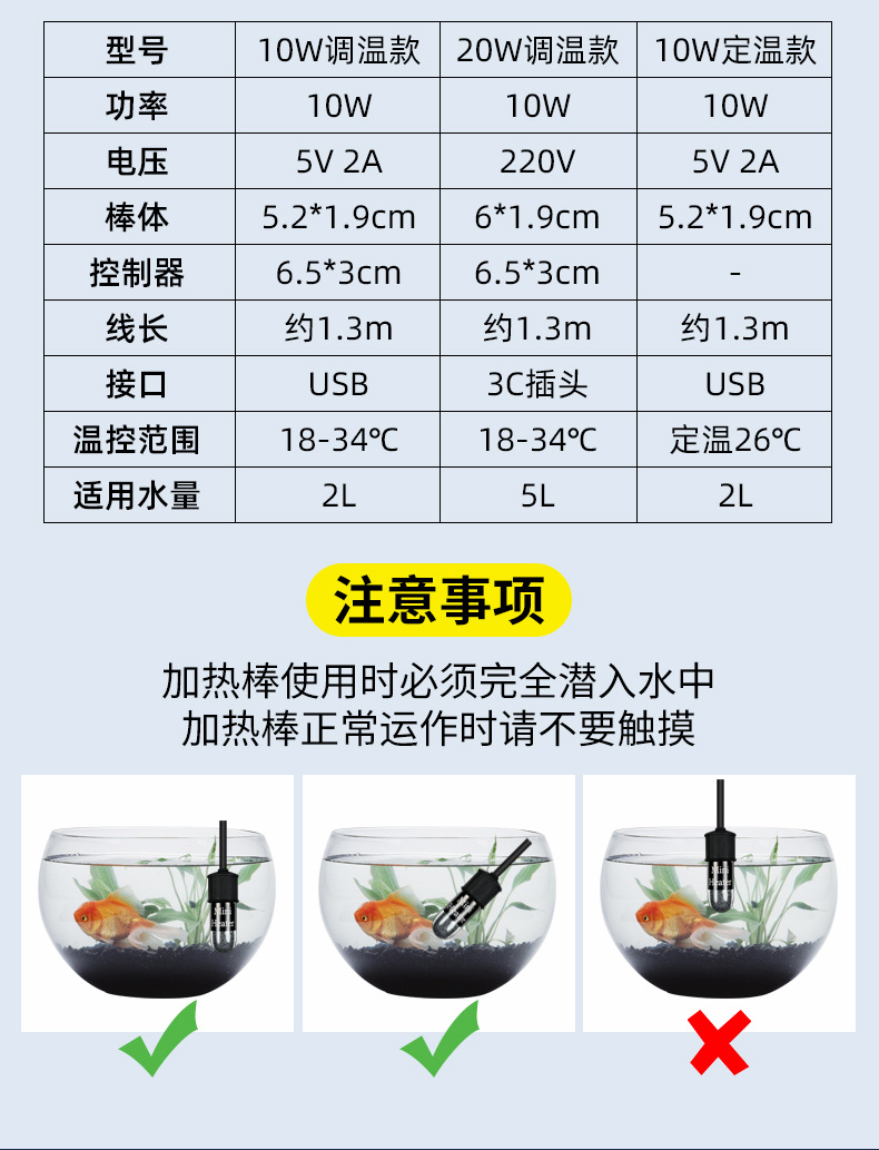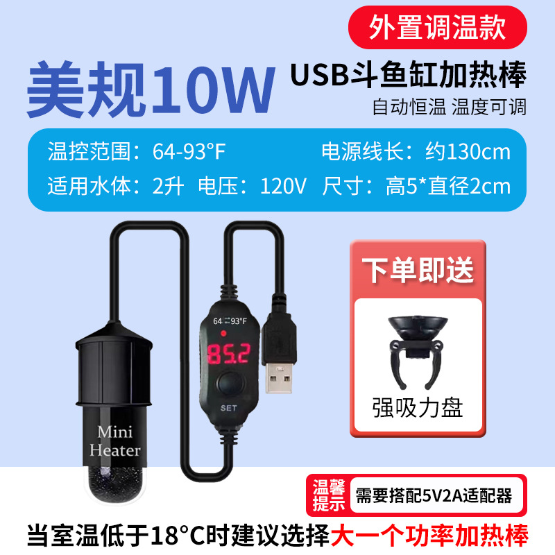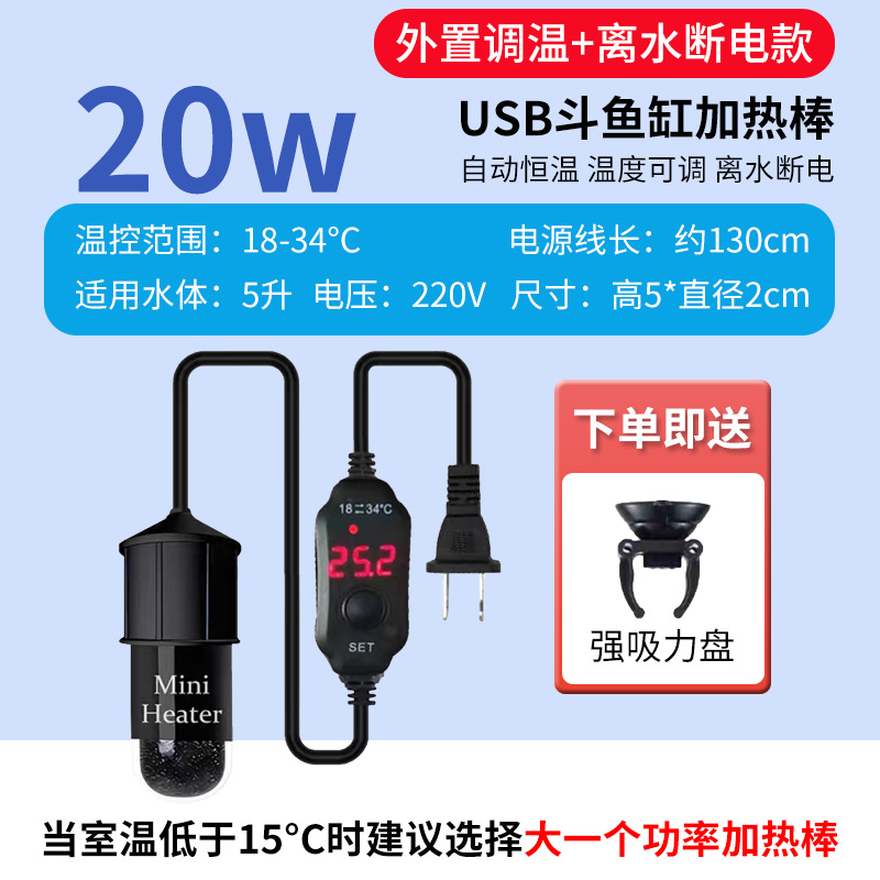 베타피쉬 탱크 미니 가열 막대 소형 초단거리 미니 전자 온도 조절 가능 자동 항온 물고기 탱크 엄지 가열 막대