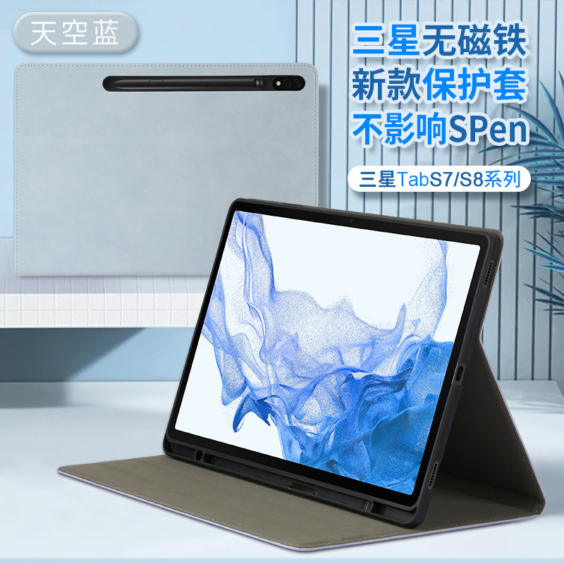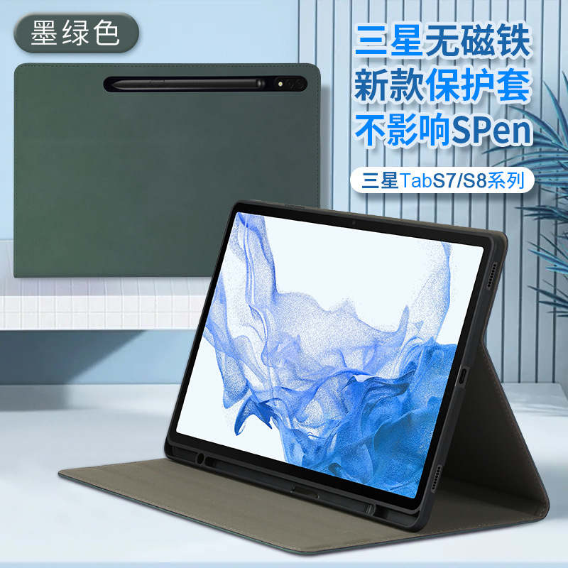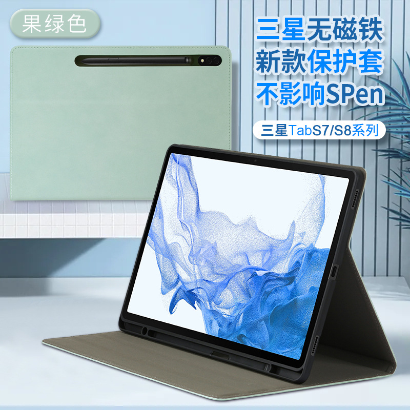 삼성 A8/TabS8/S7 플랫 비자기 보호 커버 펜 슬롯 브라켓 포함 낙하 방지 소프트 케이스 S9 + ULTRA스토어 가기