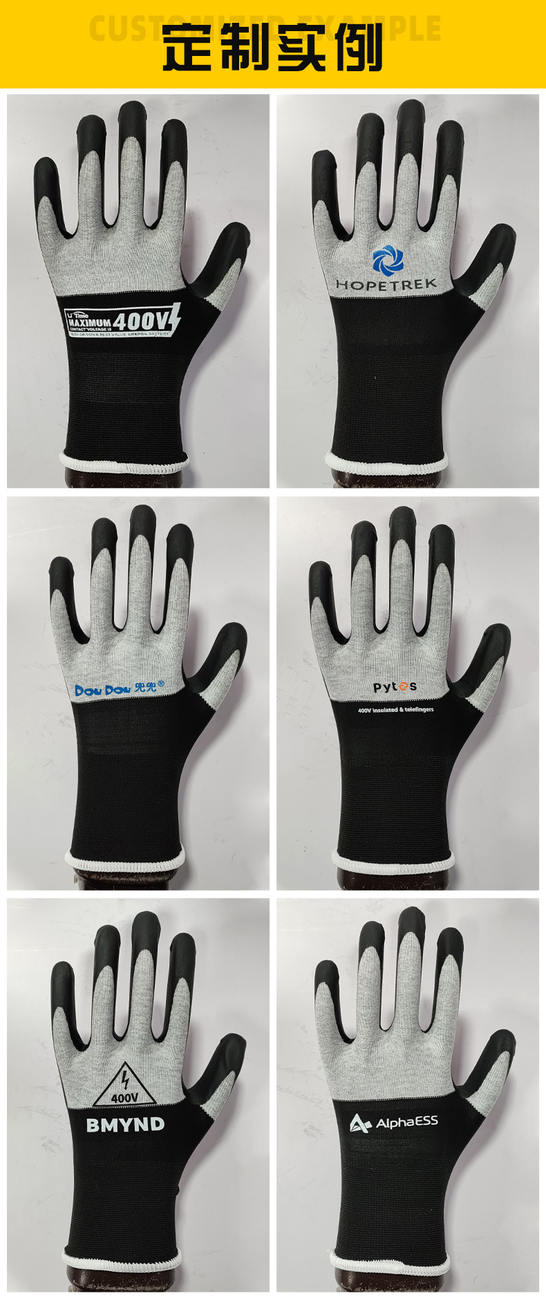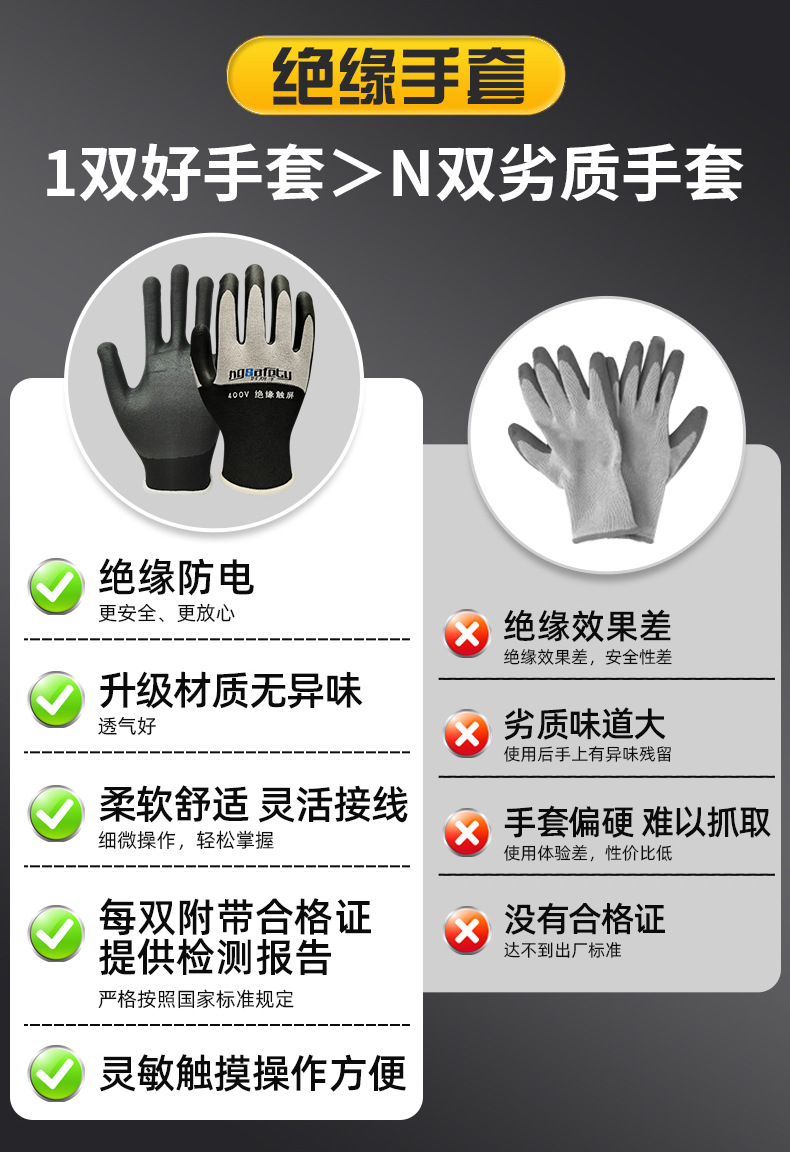 전기 작업을 위한 초박형 니트릴 400V 저전압 절연 장갑 380V 안전 전기 기술자 감전 방지 터치 스크린 교수형 접착제
