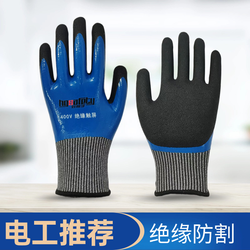 超薄丁腈400V低压绝缘手套带电作400V可触屏安全电工手套挂胶