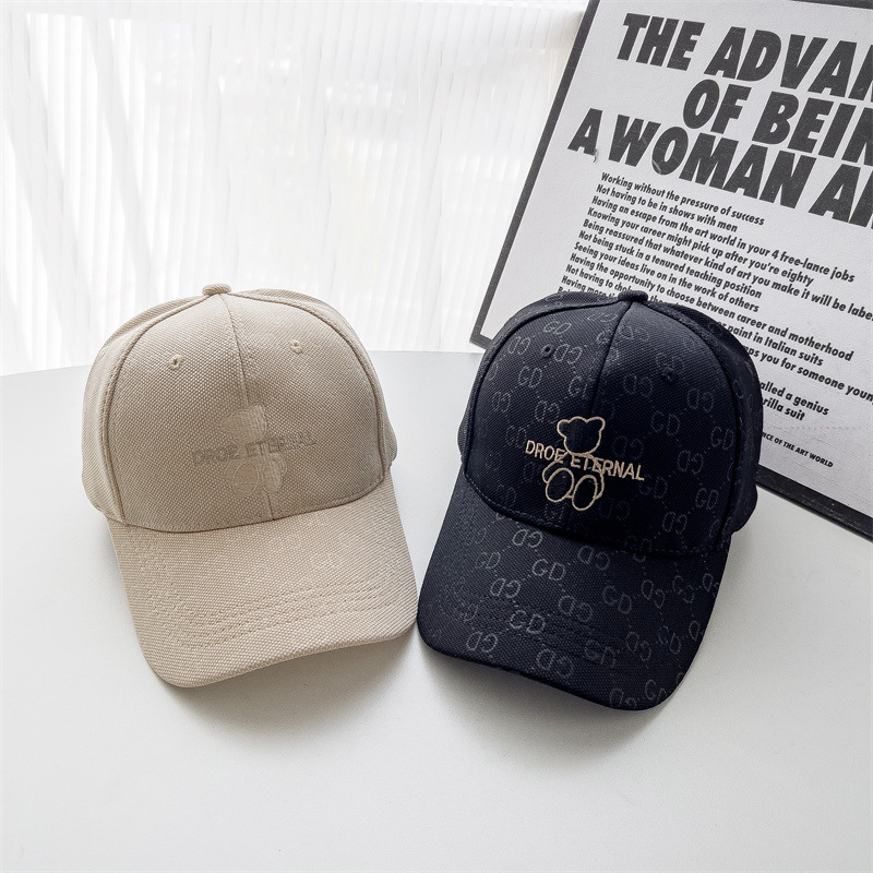 봄과 여름 유행 새로운 슈퍼 귀여운 곰 자수 야구 모자 인스 타 그램 한국 스타일 캐주얼 모든 경기 얼굴 표시 여성을위한 작은 모자스토어 가기