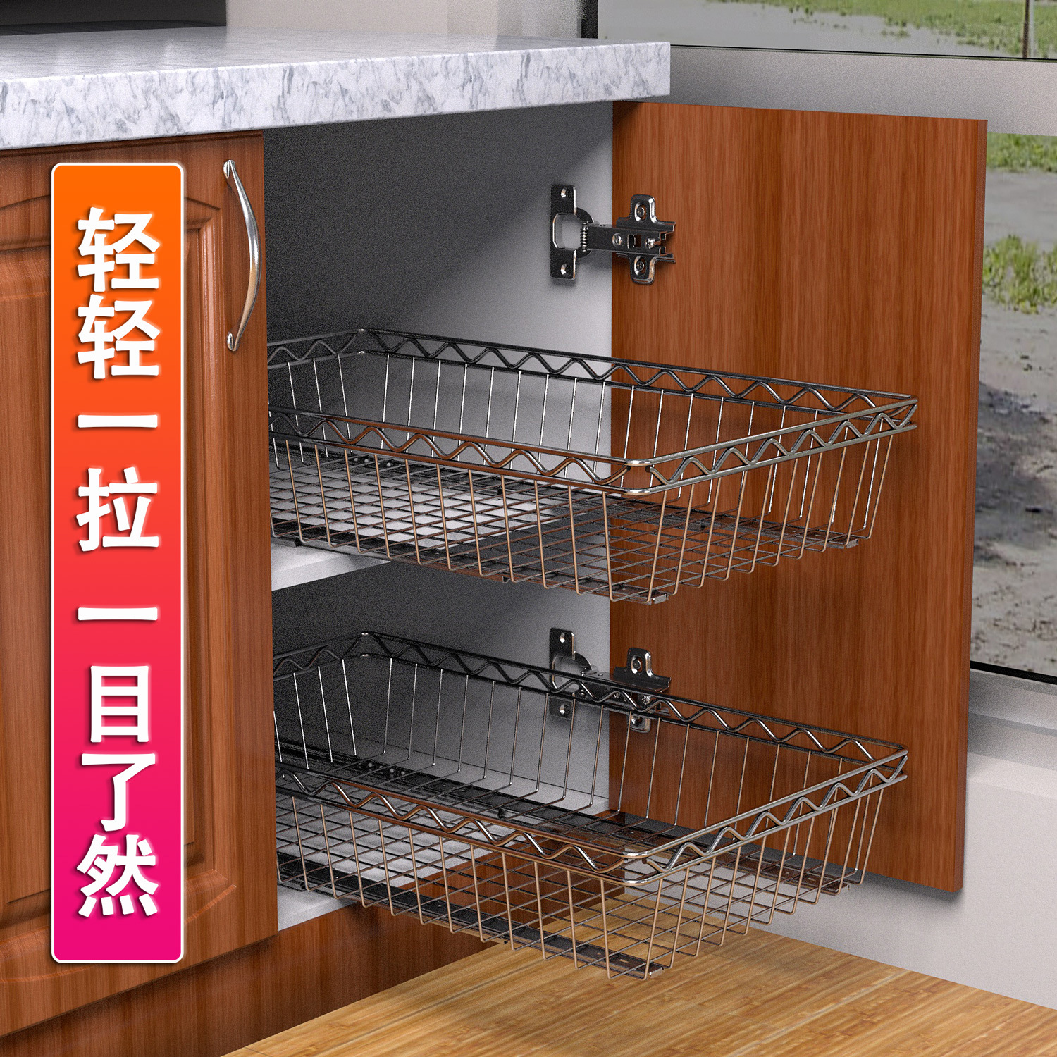 3ZBY 주방 바구니 스테인레스 스틸 스토리지 랙 캐비닛 그릇 및 접시 랙 풀 아웃 바구니 개조 옷장 조미료 바구니