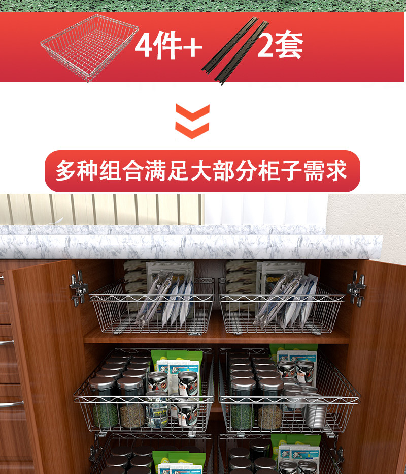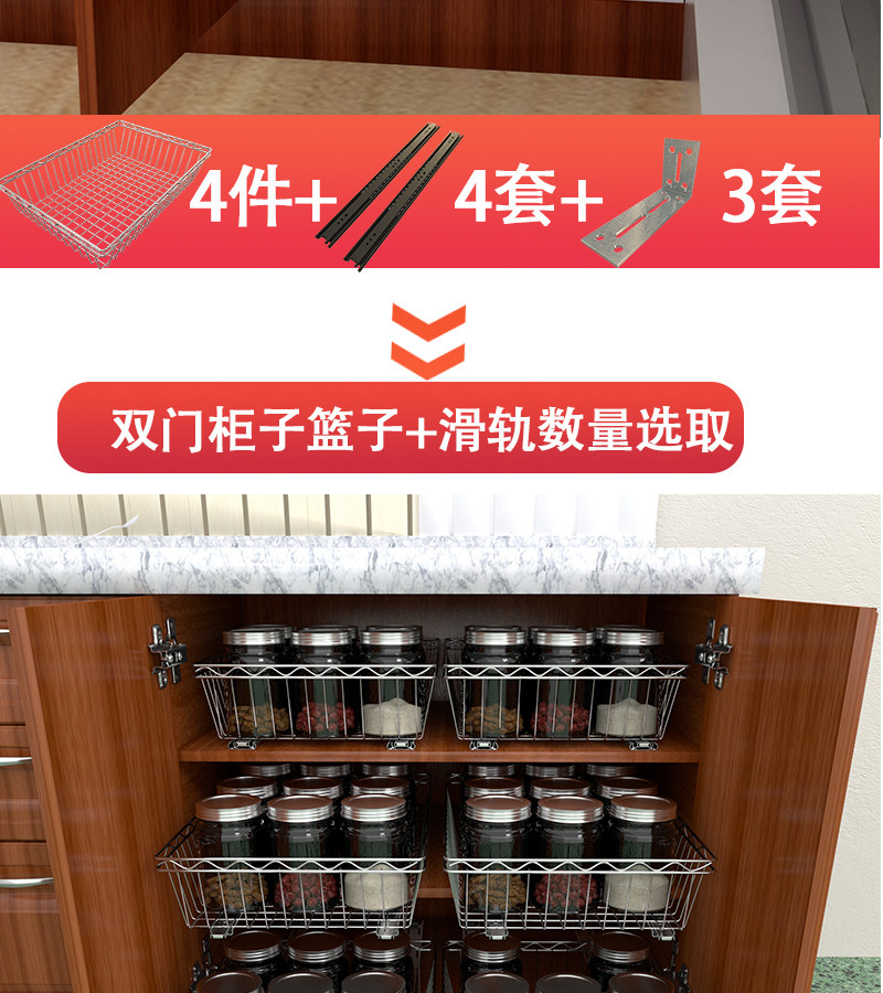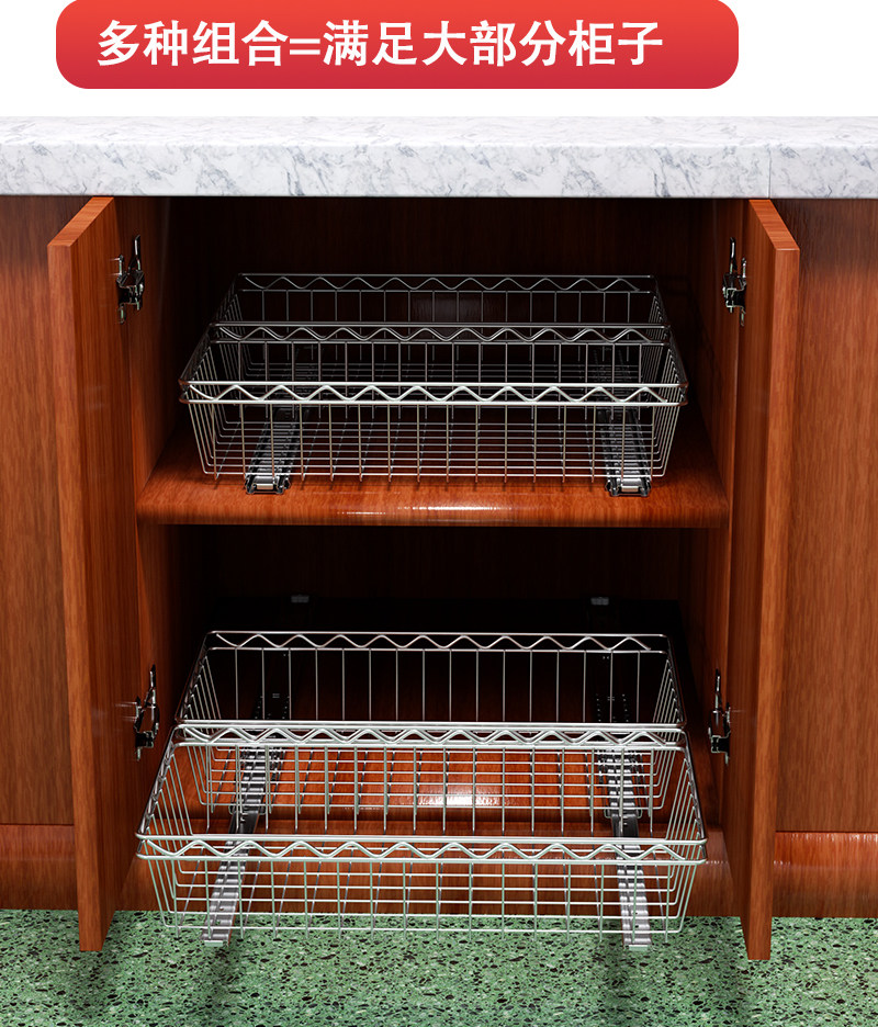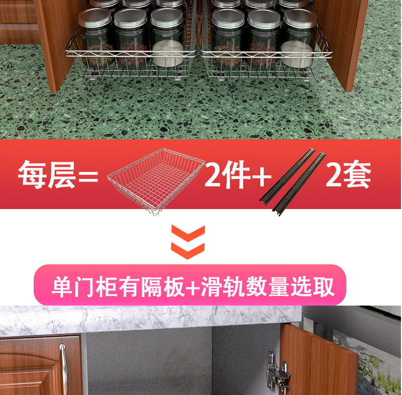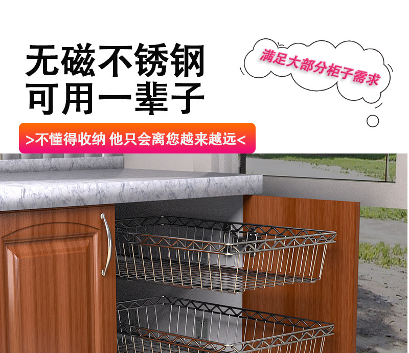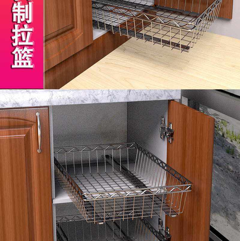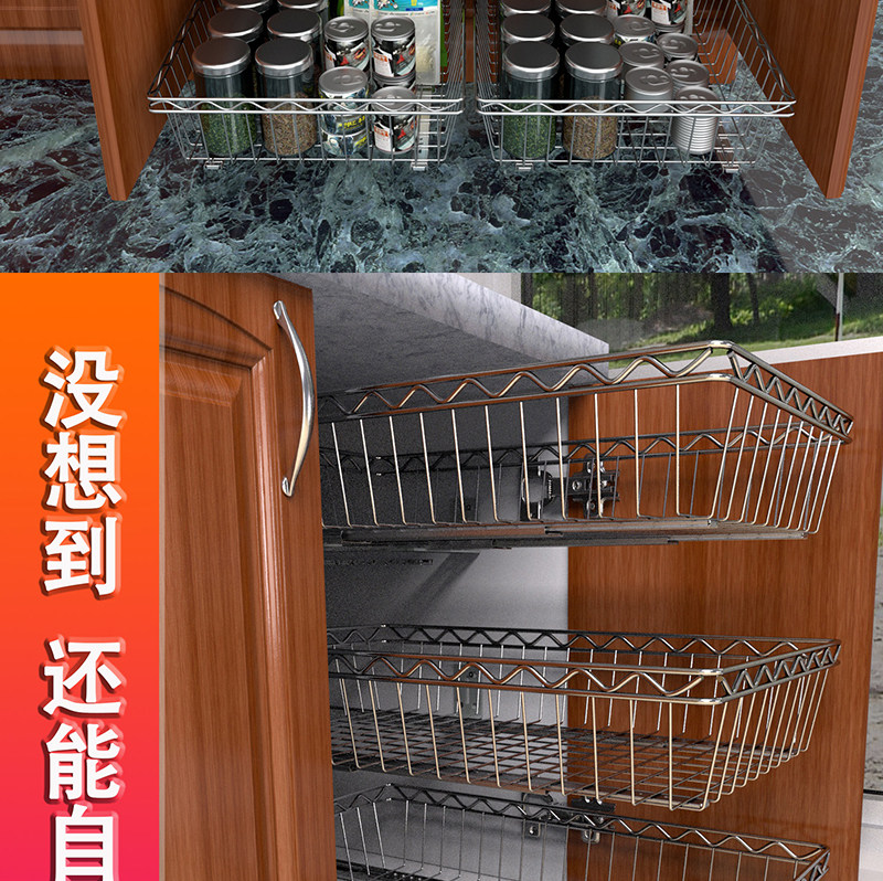 3ZBY 주방 바구니 스테인레스 스틸 스토리지 랙 캐비닛 그릇 및 접시 랙 풀 아웃 바구니 개조 옷장 조미료 바구니스토어 가기