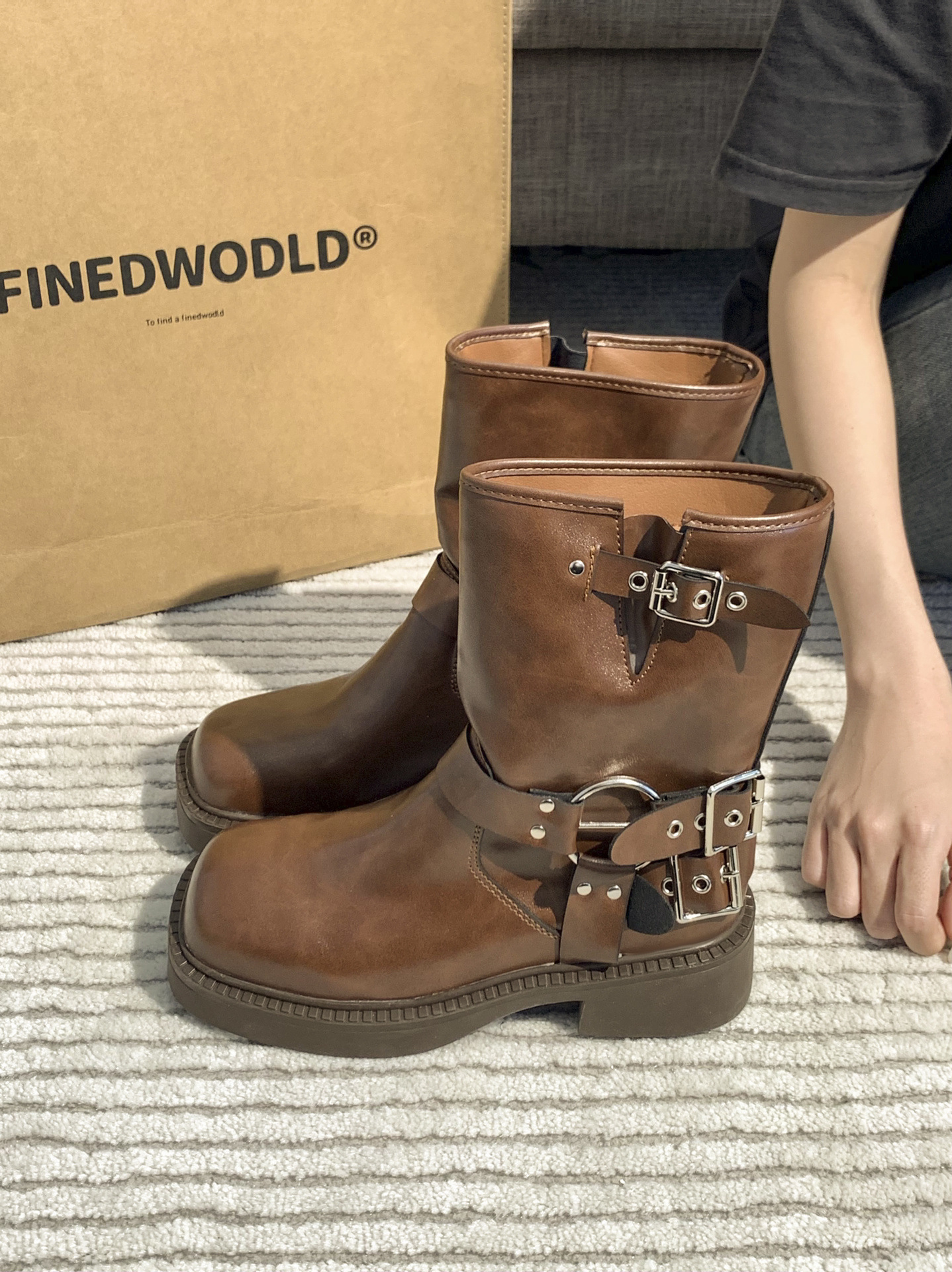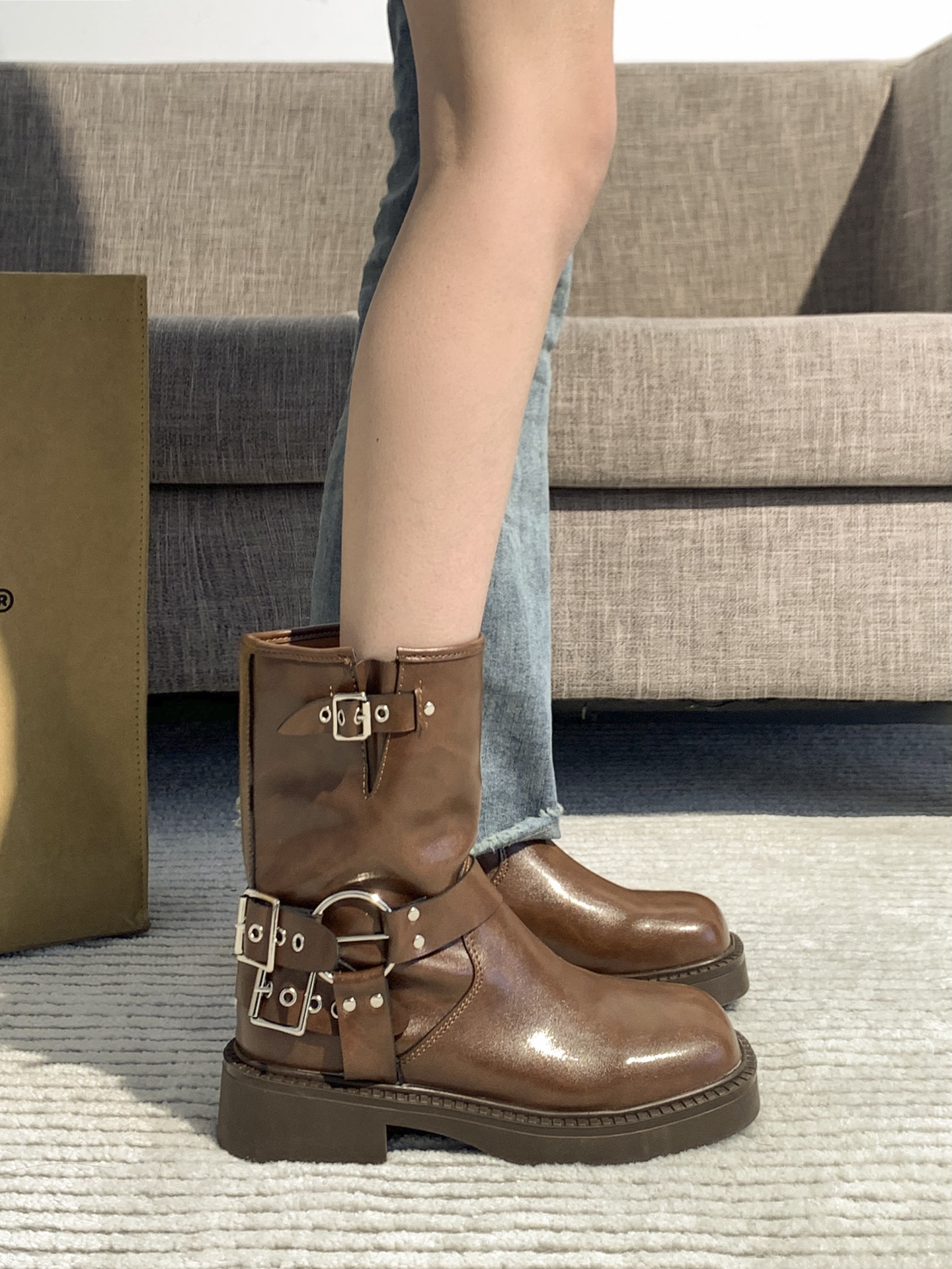 두꺼운 굽 마틴 부츠 여성용 2023 영국 스타일 레트로 스퀘어 발가락 짧은 부츠 슬리브 웨스턴 카우보이 부츠 나이트 부츠