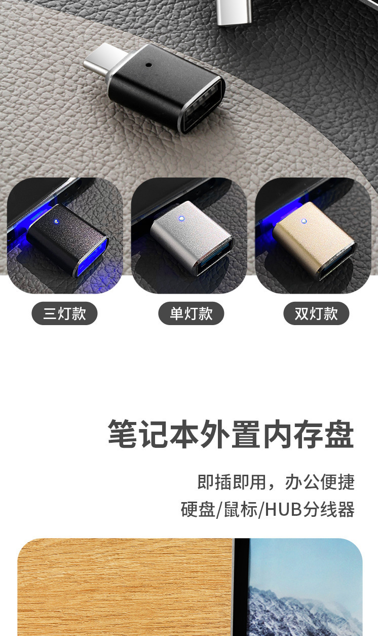 듀얼 라이트 알루미늄 합금 휴대 전화 자동차 U 디스크 충전 어댑터로 USB3.0 에 새로운 otg 어댑터 타입-c스토어 가기