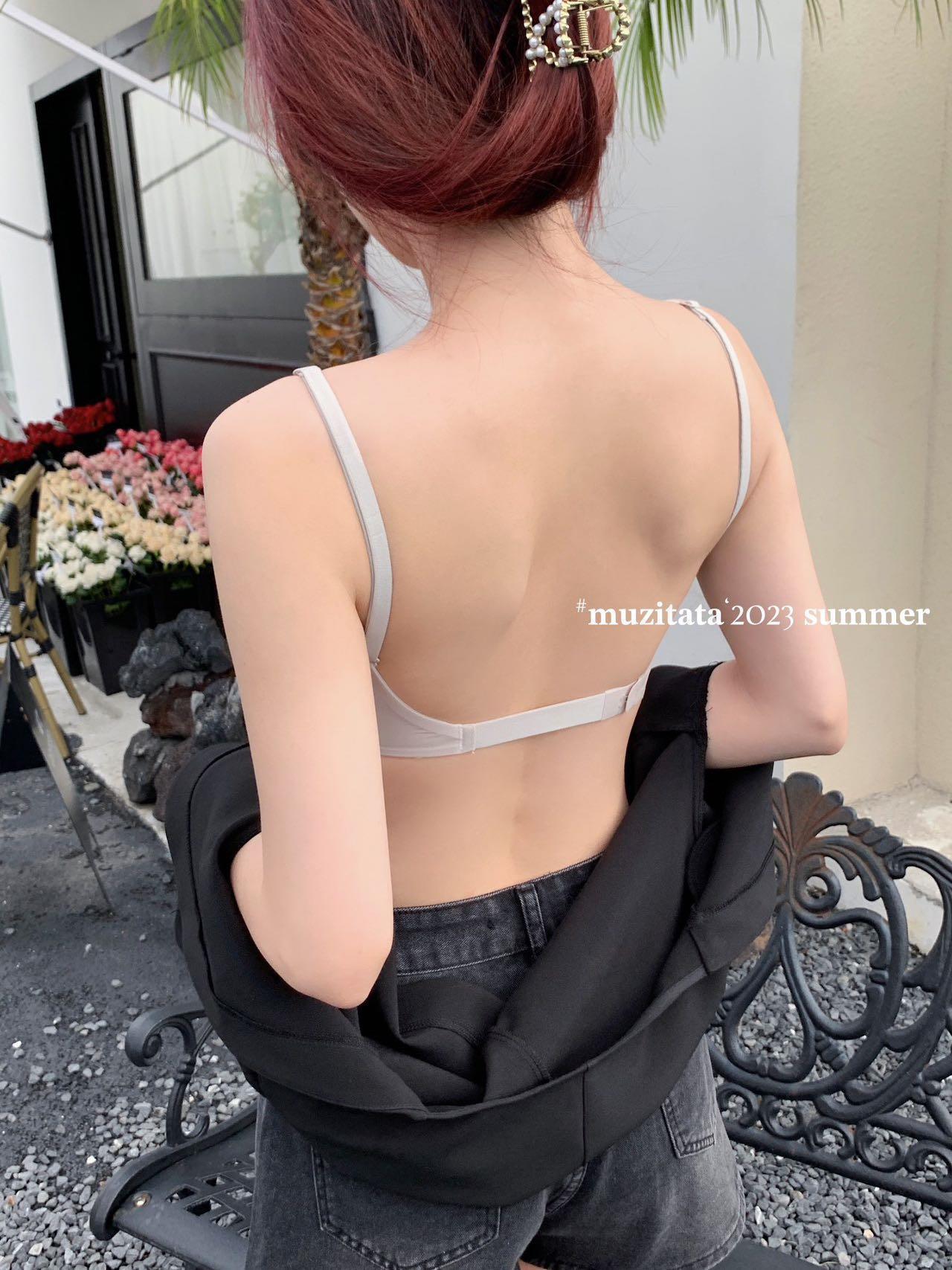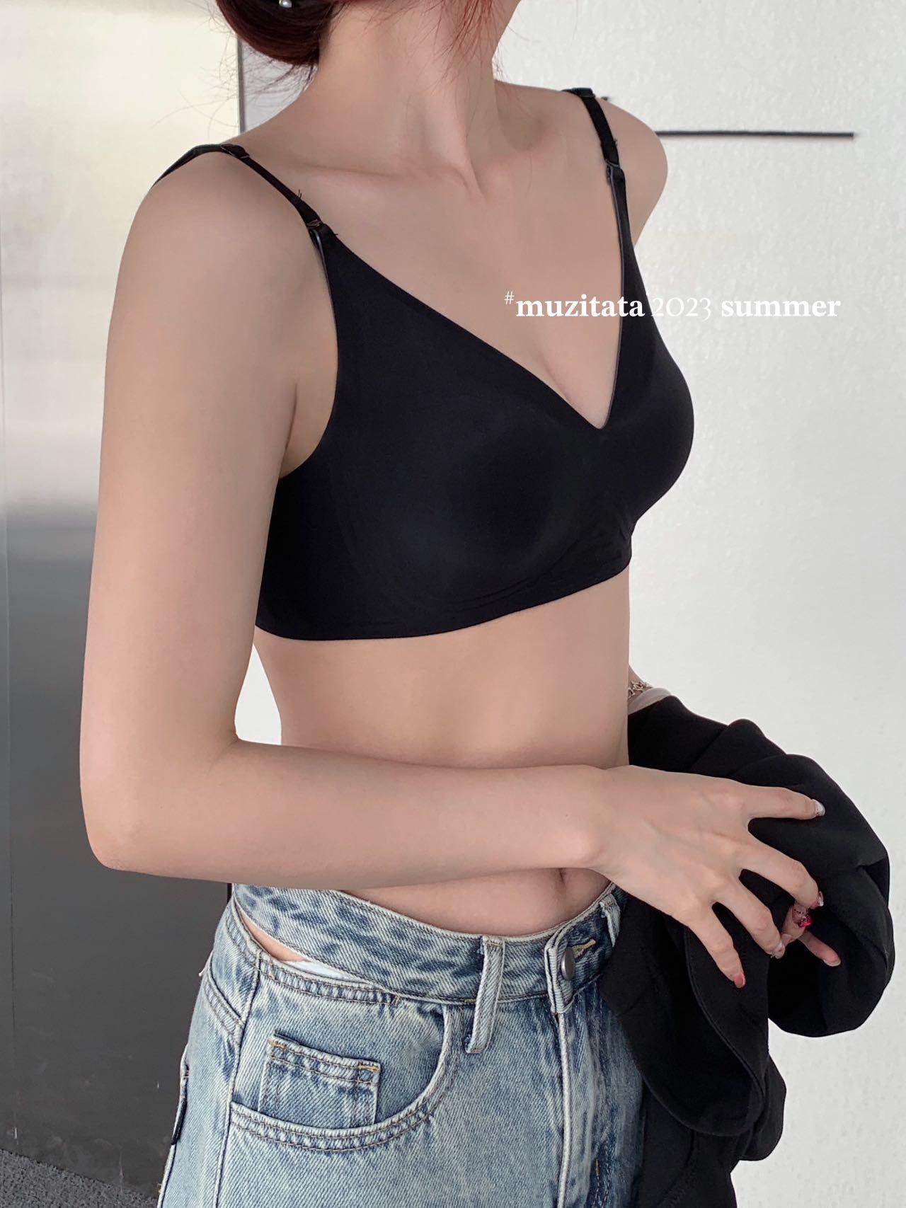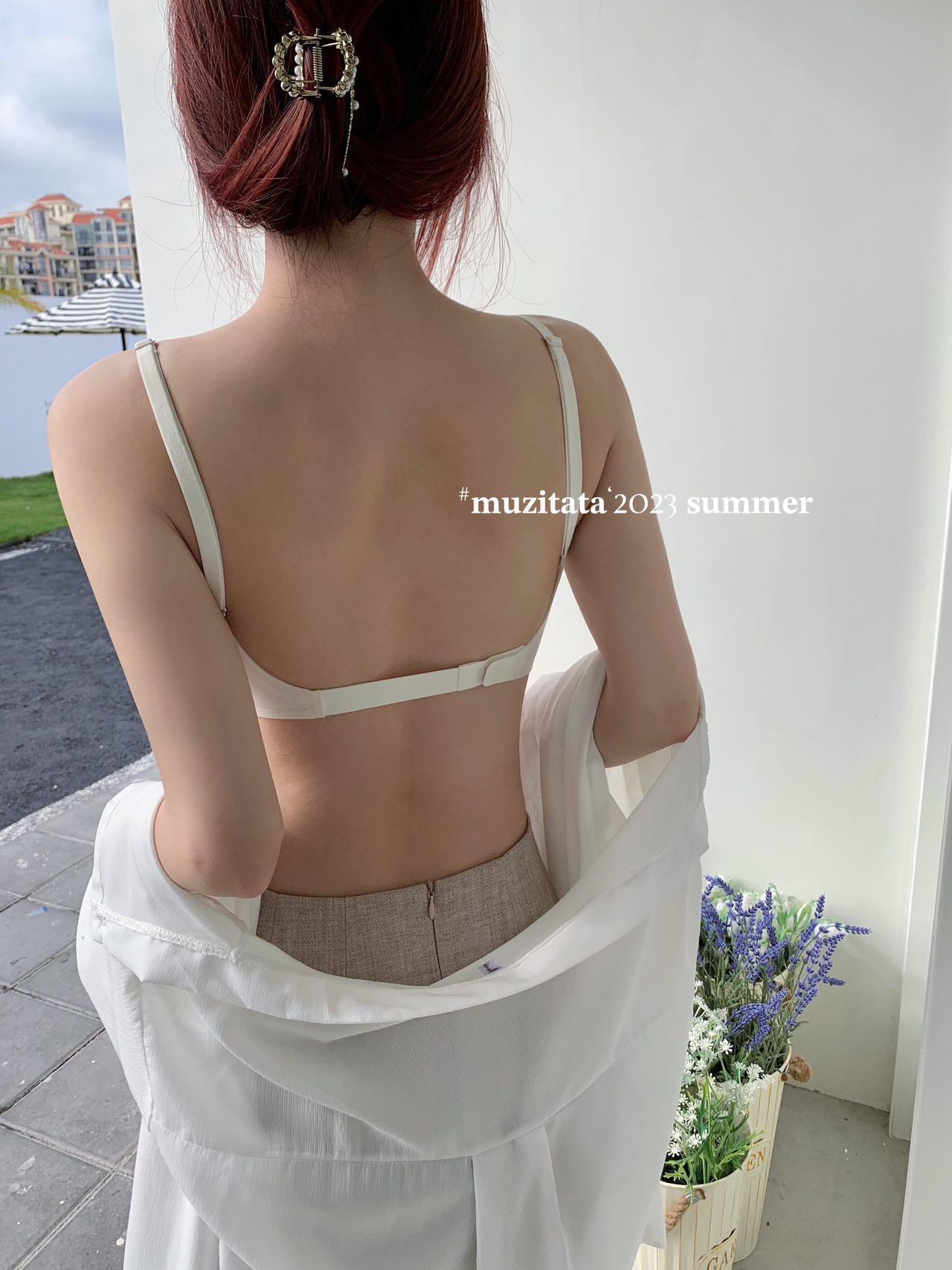여름 아름다운 등 얇은 알몸 근육 얼음 피부 우유 젤리 보이지 않는 속옷 원활한 스틸 링 무료 토끼 귀 컵 브래지어스토어 가기