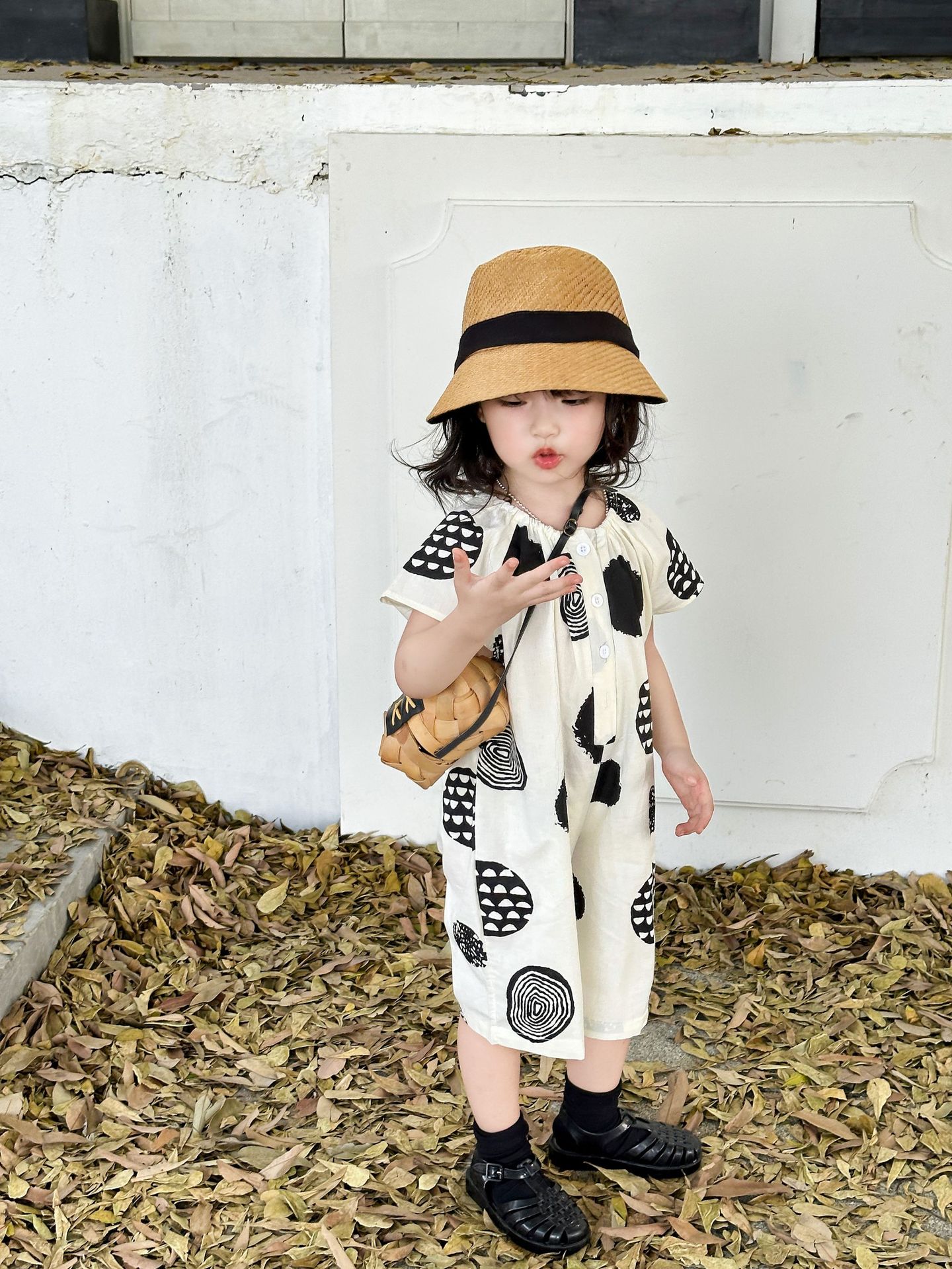 여아 바지 플라잉 슬리브 추상 프린트 점프 슈트 점프 슈트 25 여름 새 스타일 대외 무역 아동 의류 Dropshipping