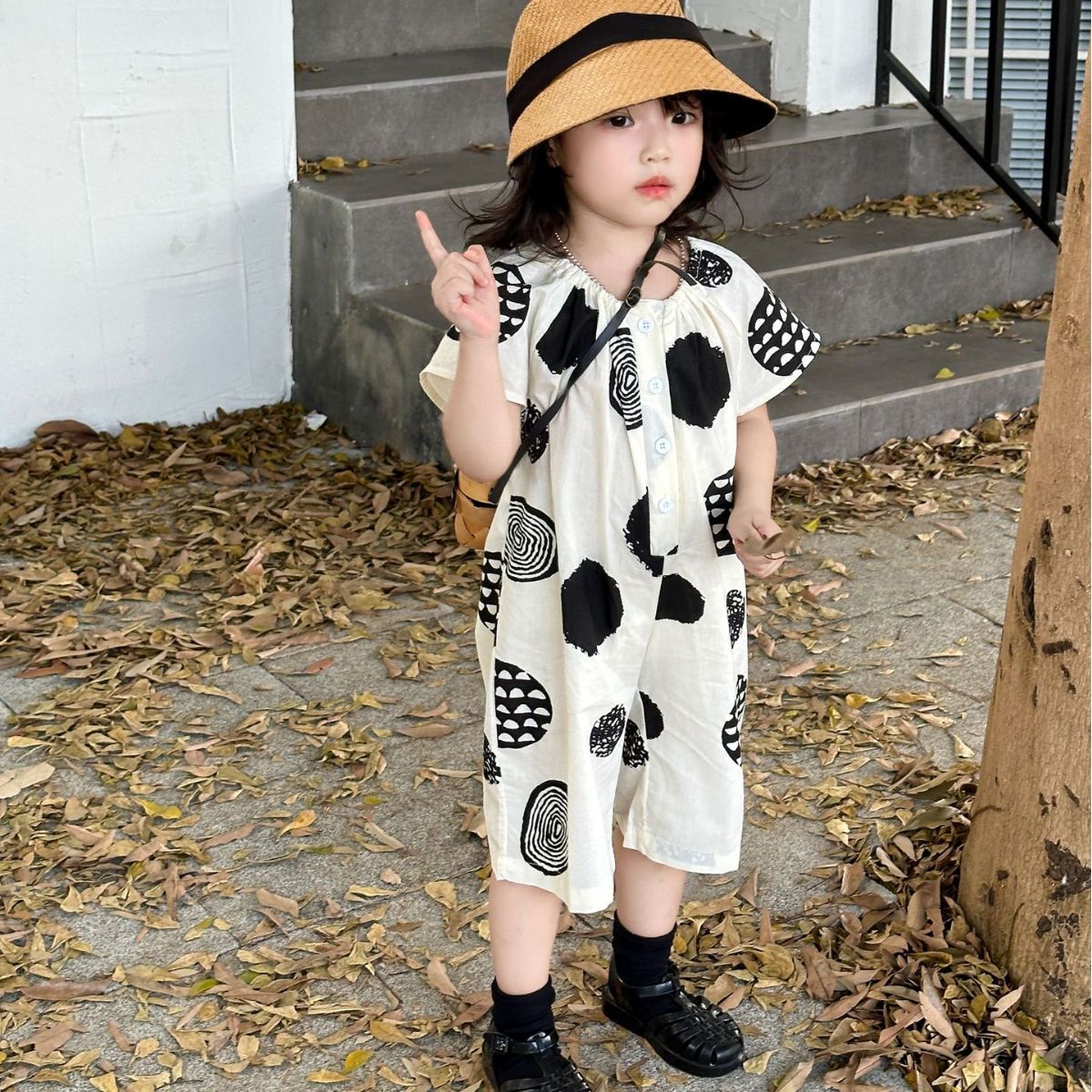 여아 바지 플라잉 슬리브 추상 프린트 점프 슈트 점프 슈트 25 여름 새 스타일 대외 무역 아동 의류 Dropshipping스토어 가기