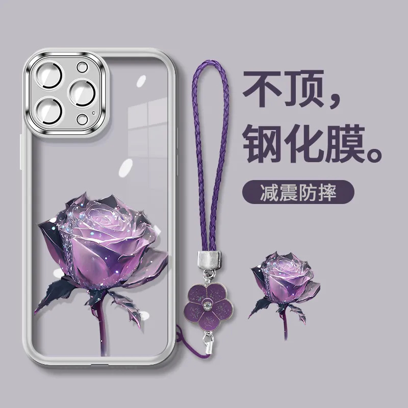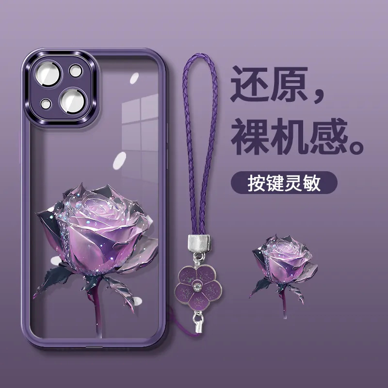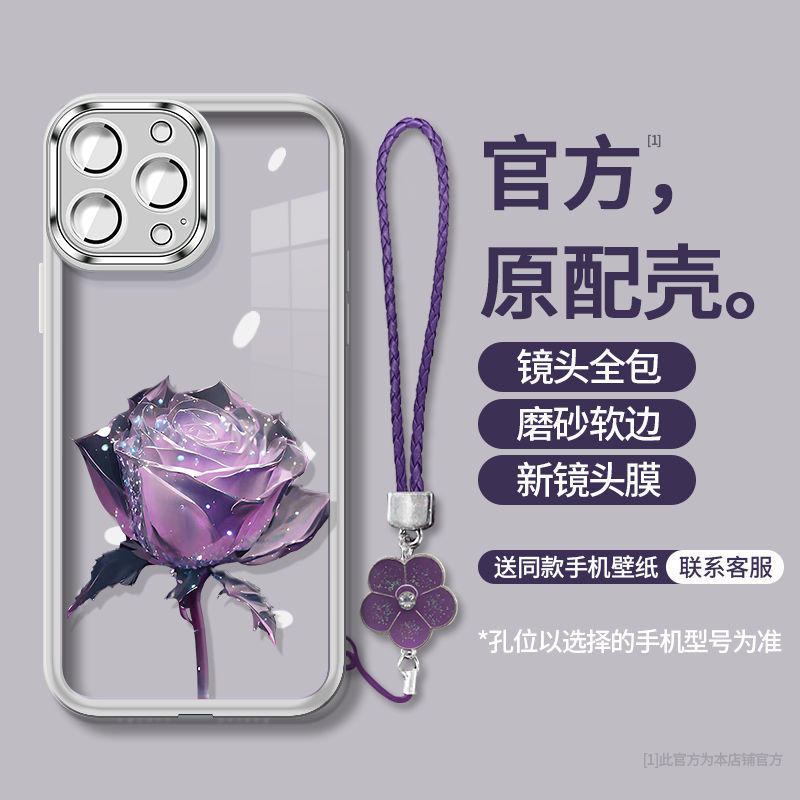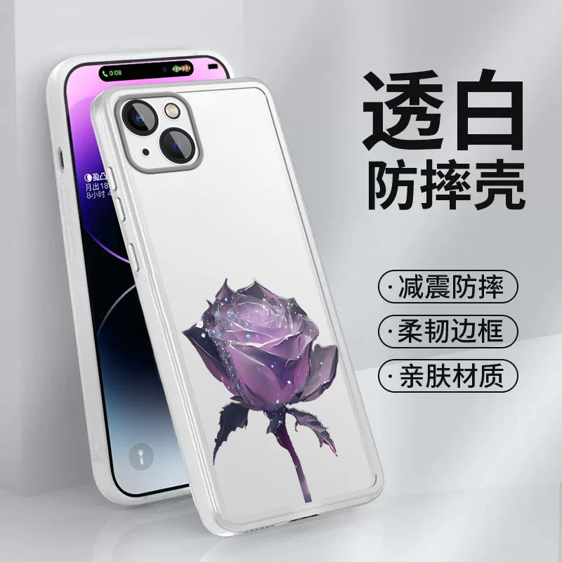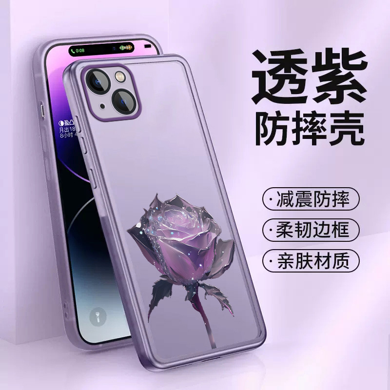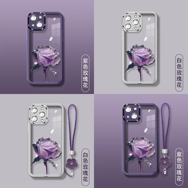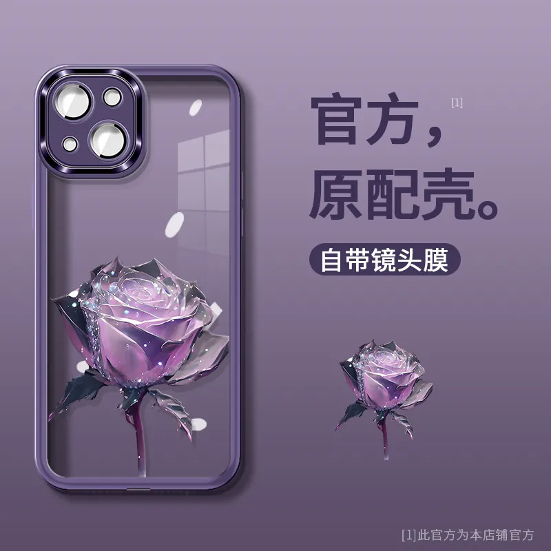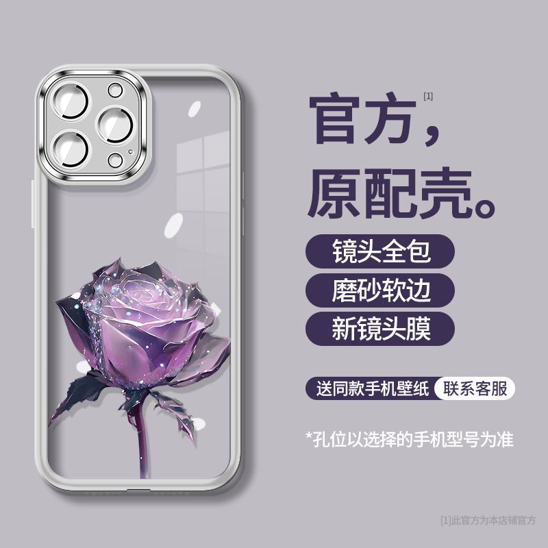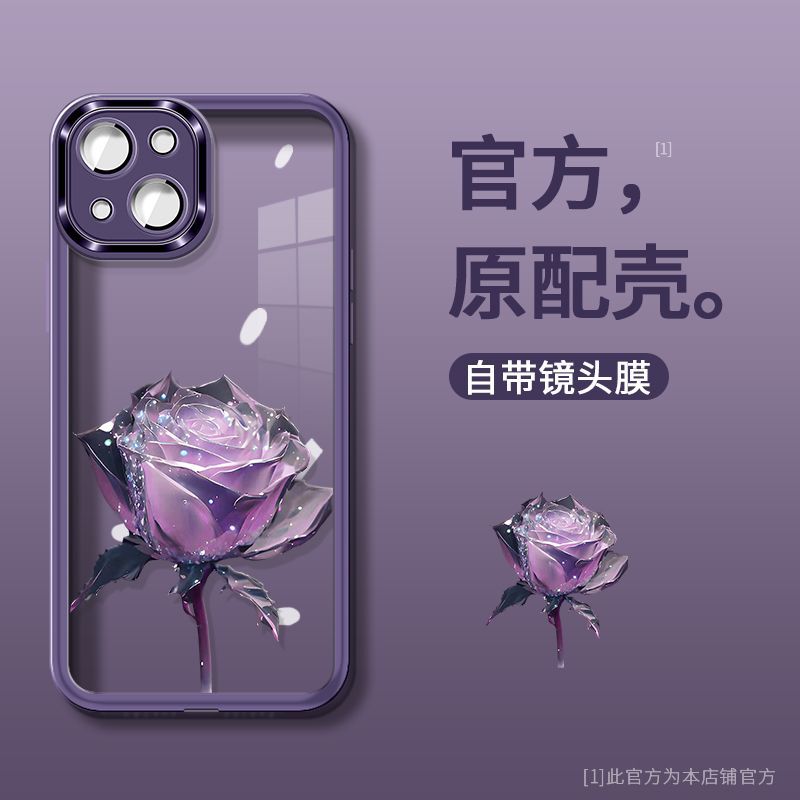 팬텀 크리스탈 퍼플 로즈 for Apple 14Promax 휴대폰 케이스 (렌즈 필름 포함) IP12 풀 커버리지 반투명 14 소프트 케이스스토어 가기