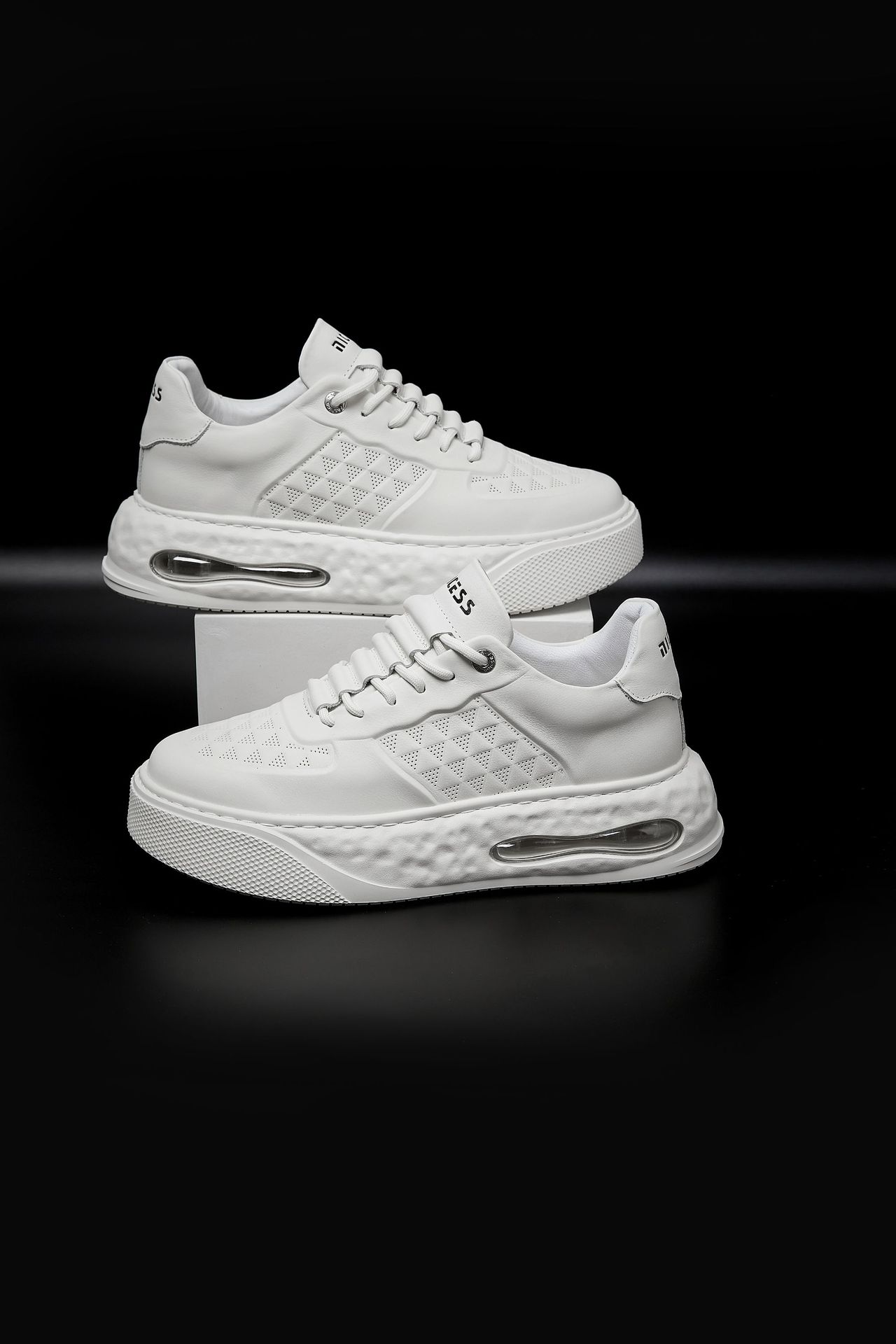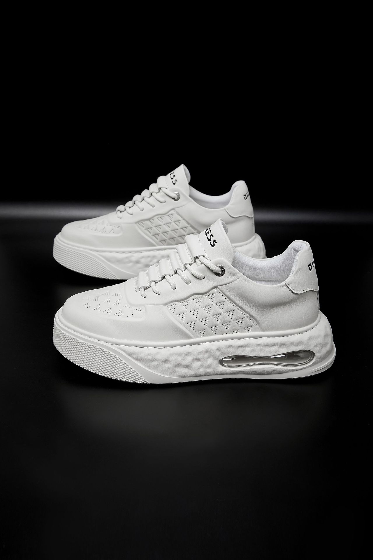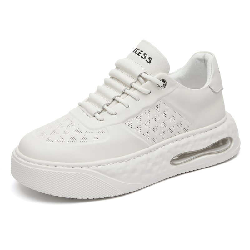 새로운 재고 탑 레이어 소가죽 스니커즈 통기성 스포츠 모든 경기 에어쿠션 트렌디 신발 두꺼운 밑창 남성용 유행 캐주얼 흰색 신발