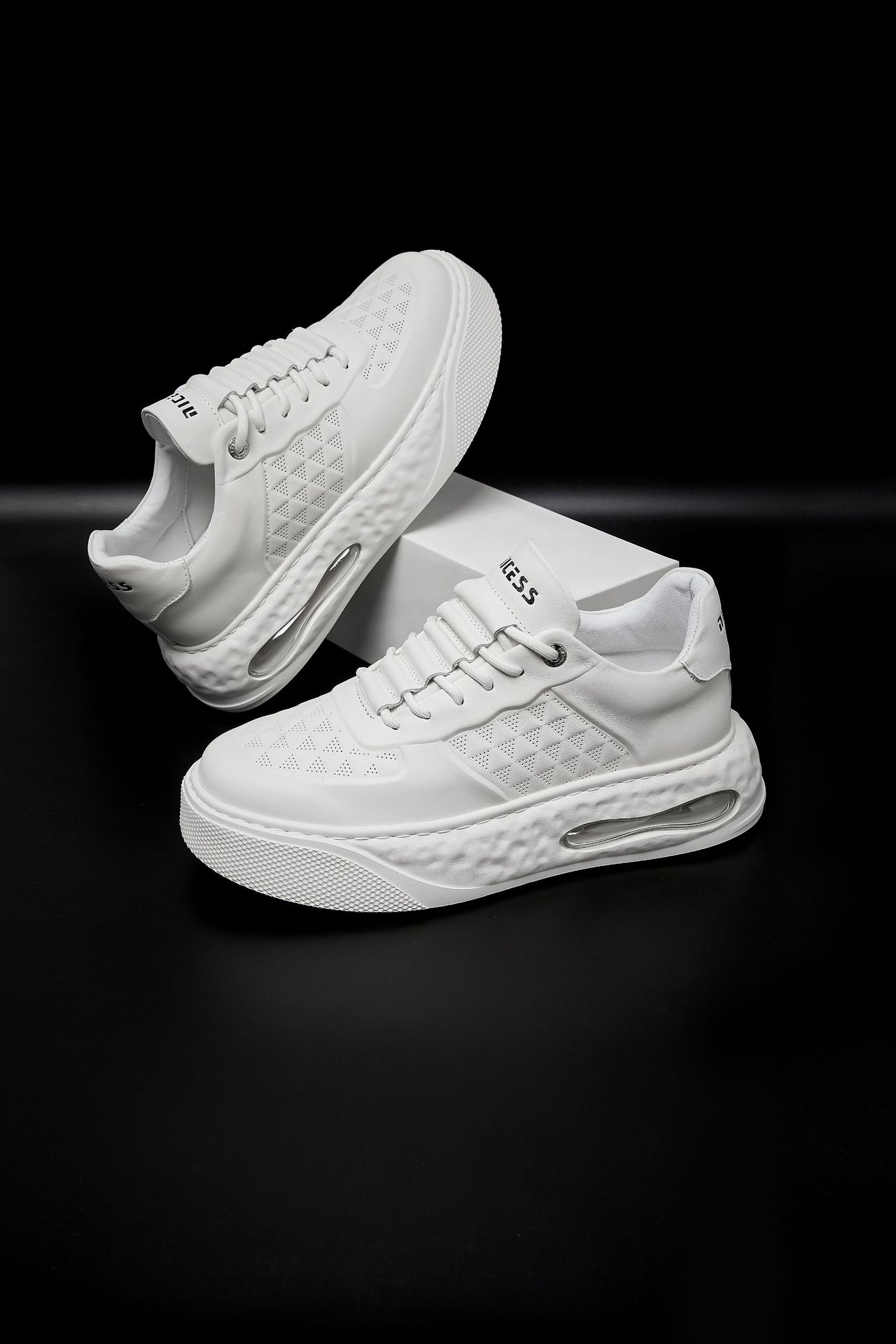 새로운 재고 탑 레이어 소가죽 스니커즈 통기성 스포츠 모든 경기 에어쿠션 트렌디 신발 두꺼운 밑창 남성용 유행 캐주얼 흰색 신발스토어 가기