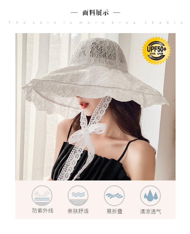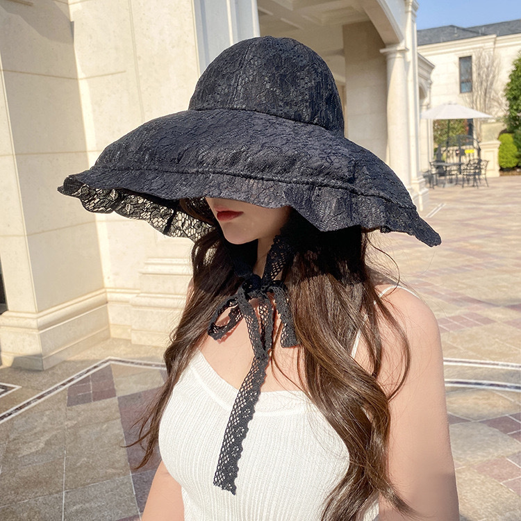 화이트 레이스 어부 모자 여자의 여름 빈티지 차양 프랑스 햅번 스타일 큰 챙 자외선 차단제 해변 휴가 모자