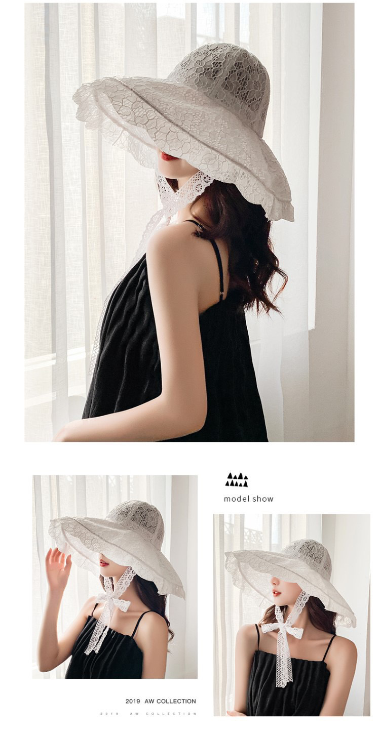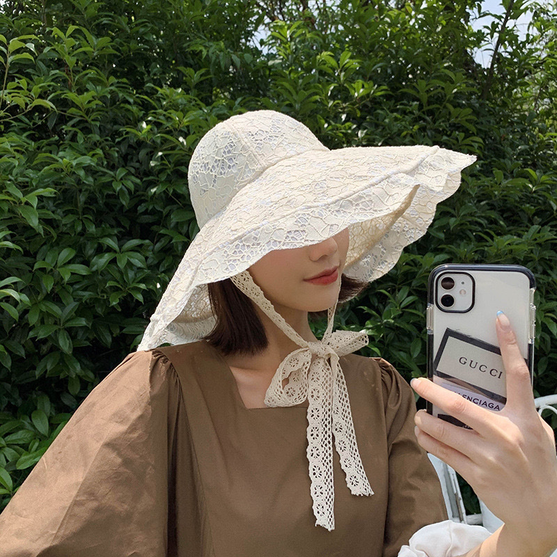 화이트 레이스 어부 모자 여자의 여름 빈티지 차양 프랑스 햅번 스타일 큰 챙 자외선 차단제 해변 휴가 모자스토어 가기