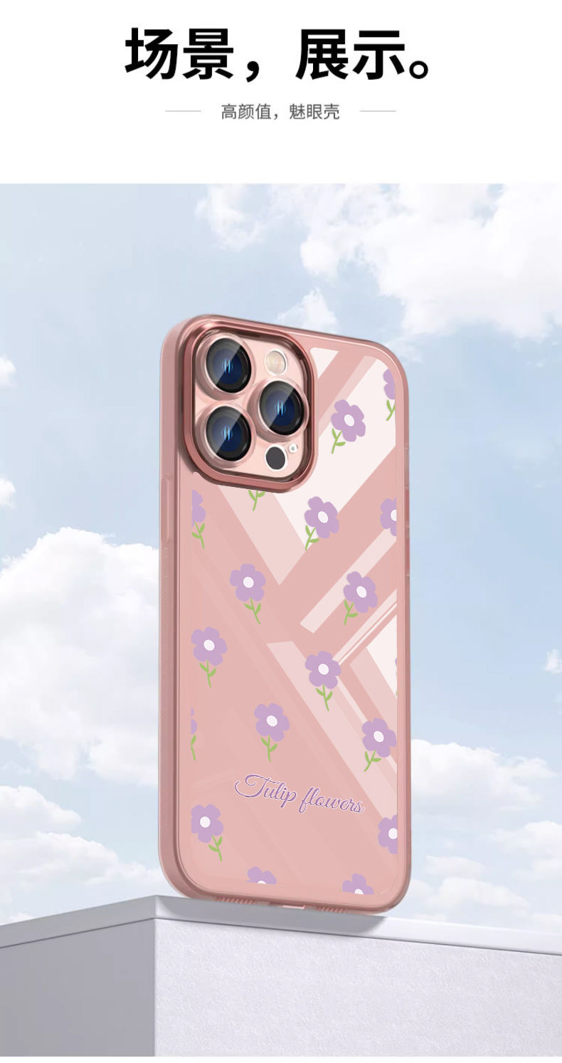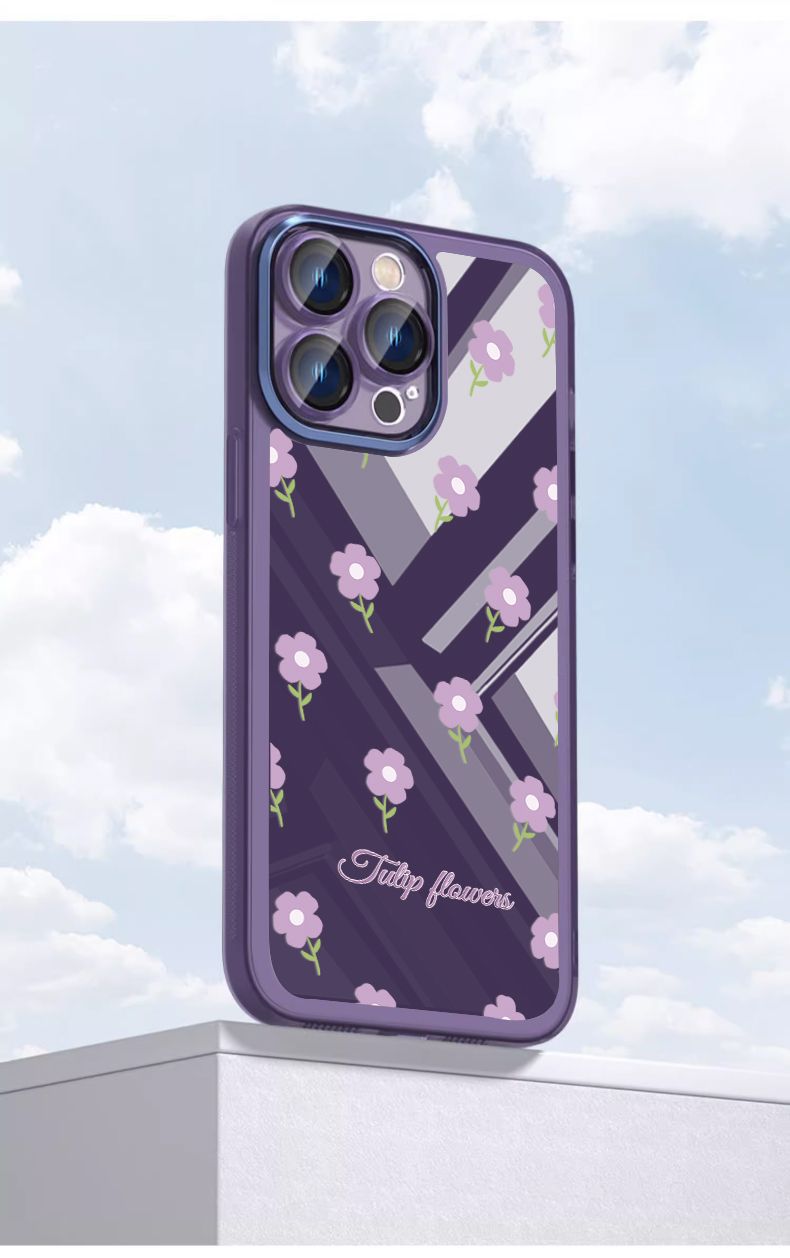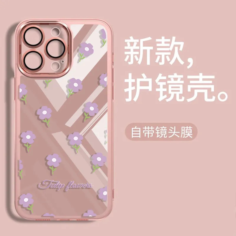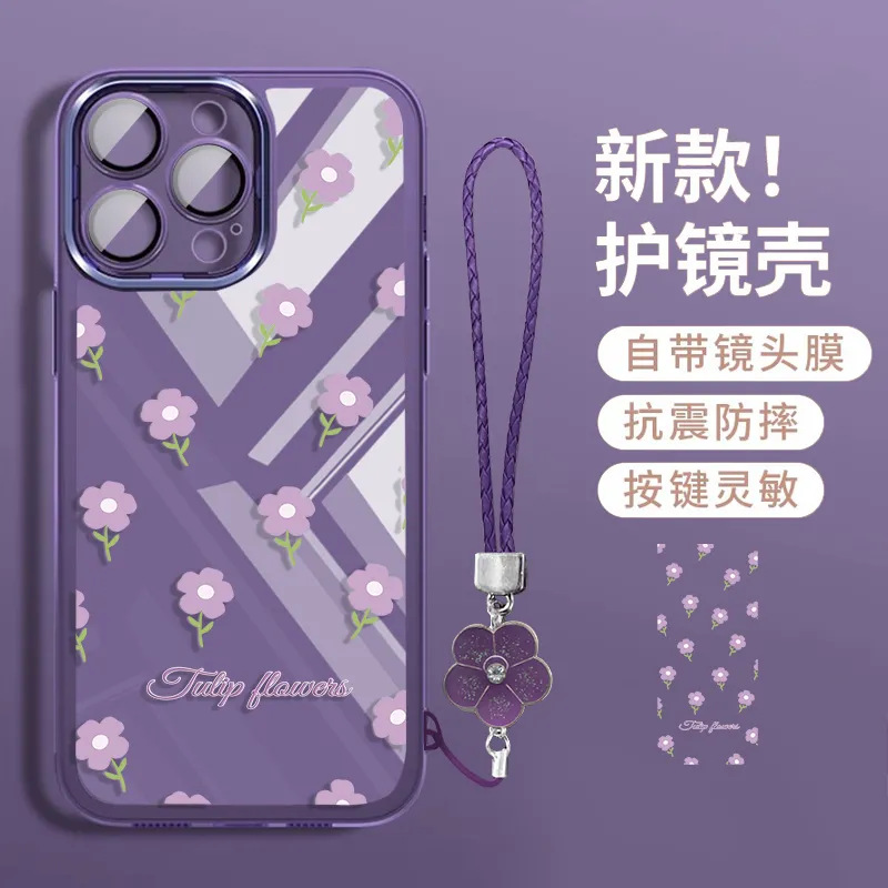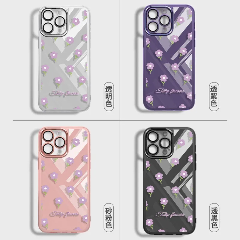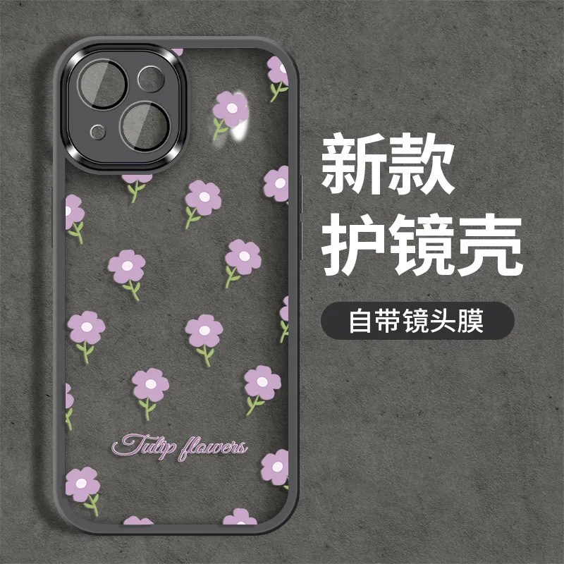 Apple 14Promax 휴대폰 케이스 (렌즈 필름 13 포함 반투명 11 소프트 케이스 포함) 용 전체 화면 보라색 꽃 무늬
