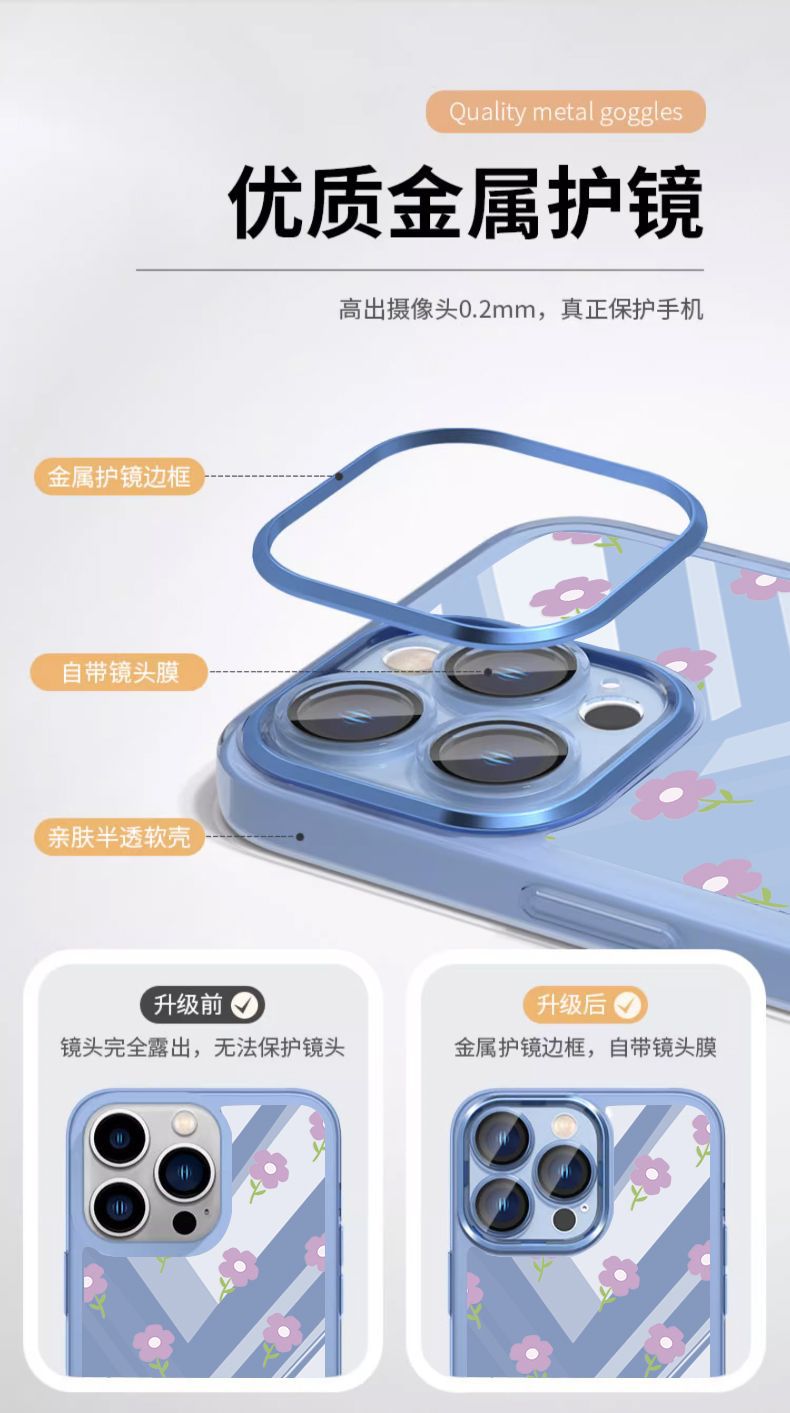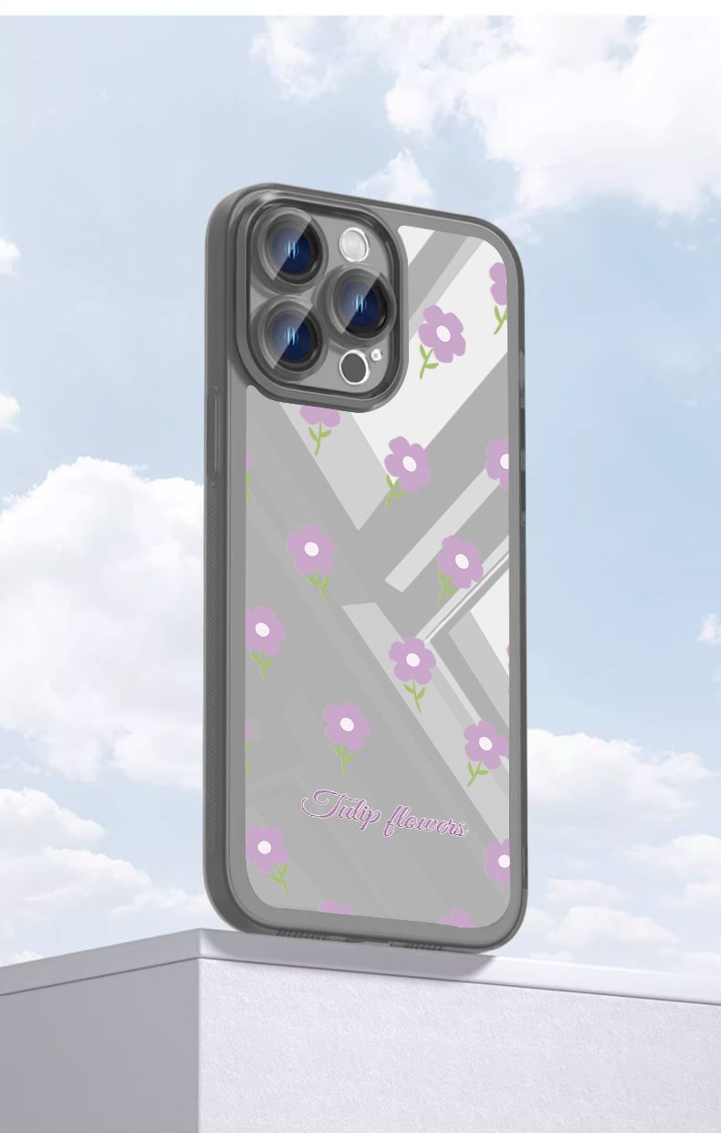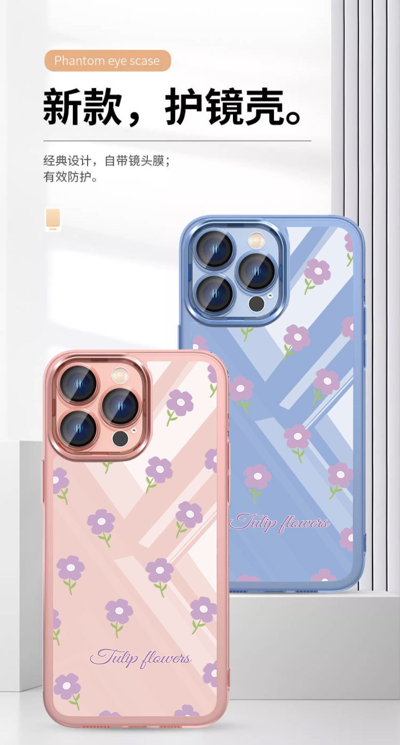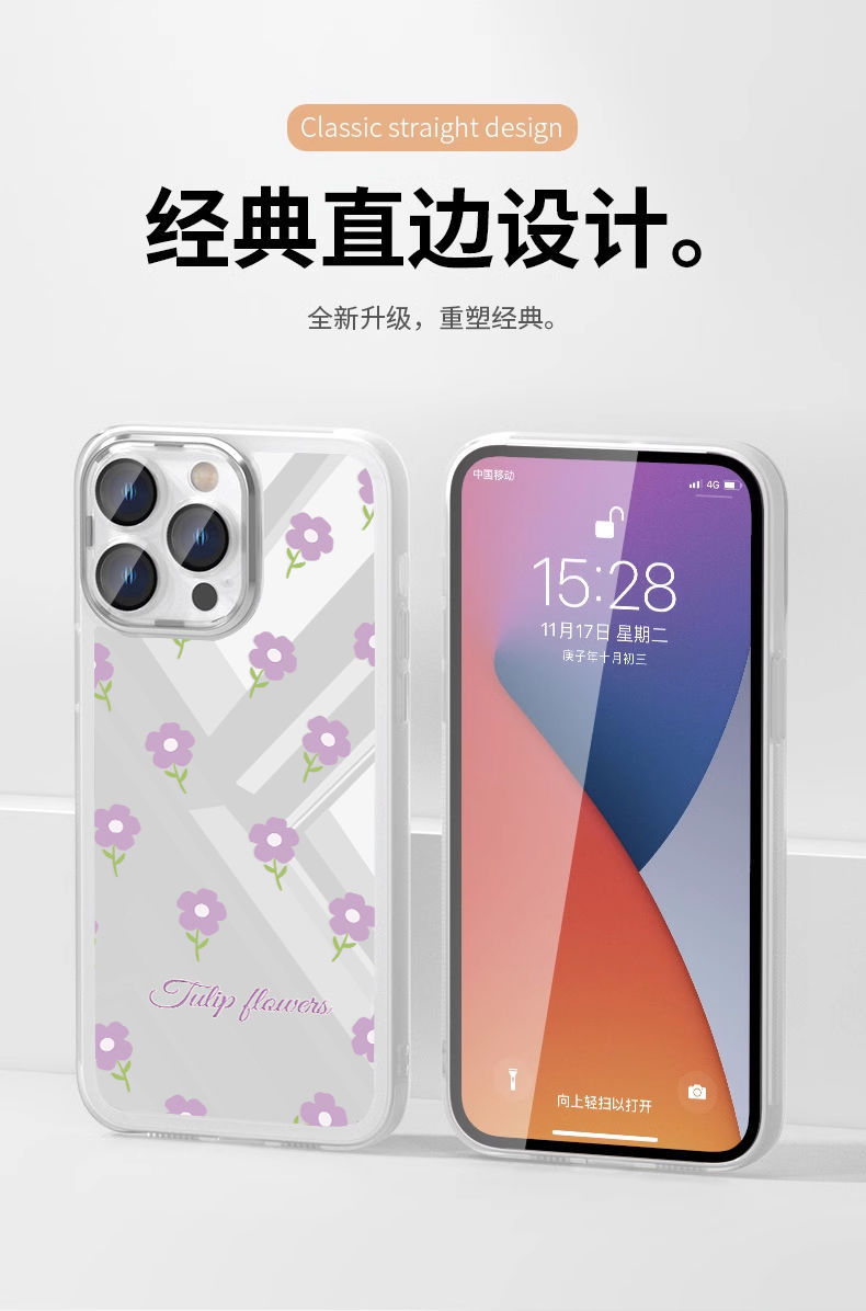 Apple 14Promax 휴대폰 케이스 (렌즈 필름 13 포함 반투명 11 소프트 케이스 포함) 용 전체 화면 보라색 꽃 무늬