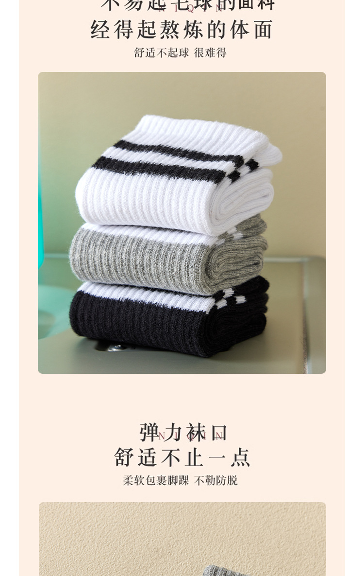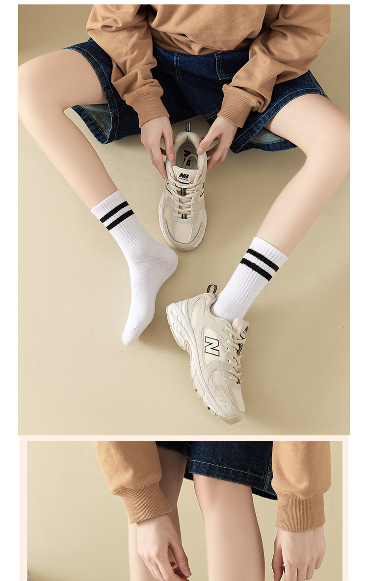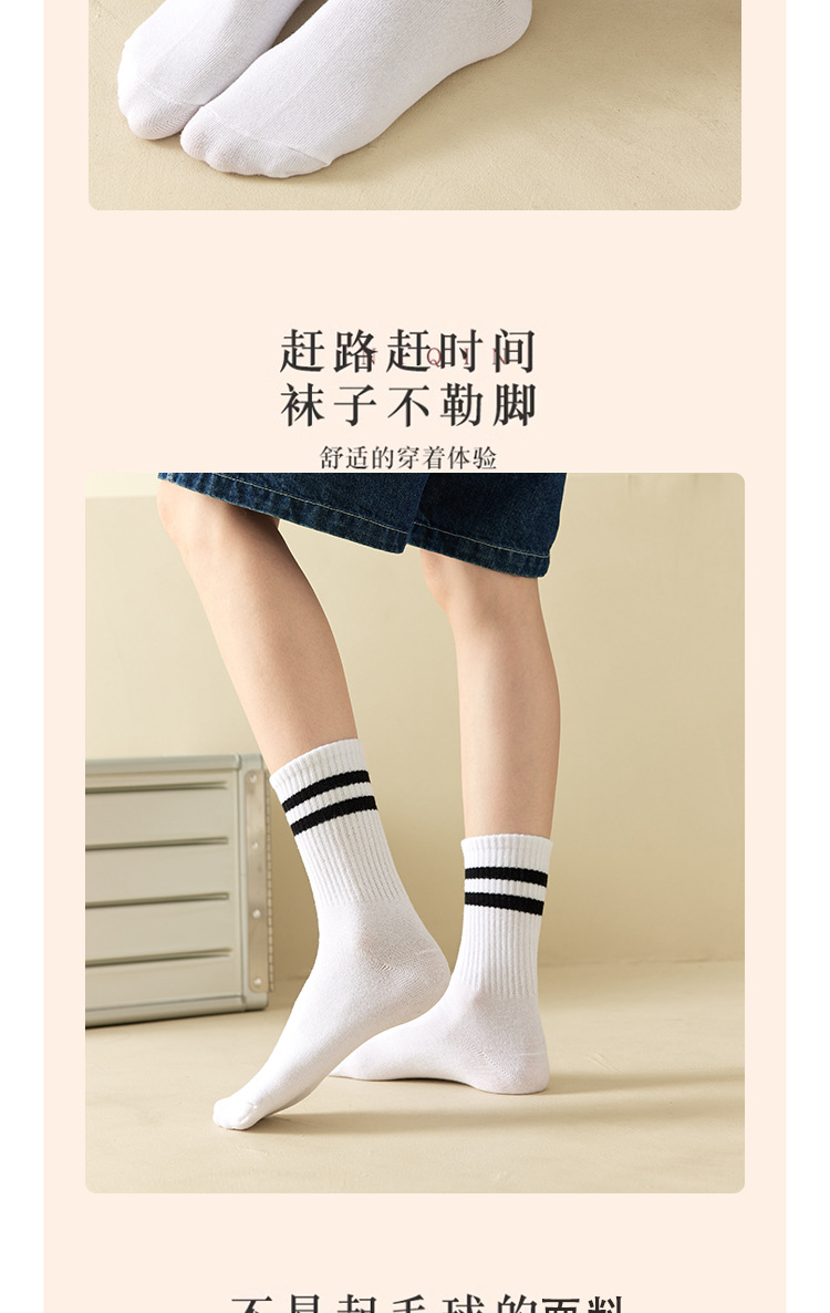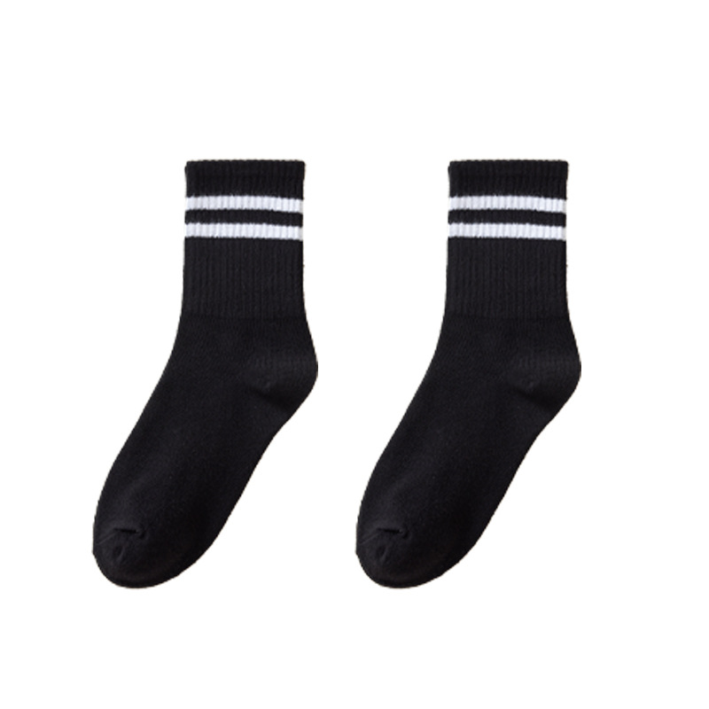 袜子女秋冬中筒袜女日系纯色堆堆袜ins潮束口运动袜二条杠长筒袜