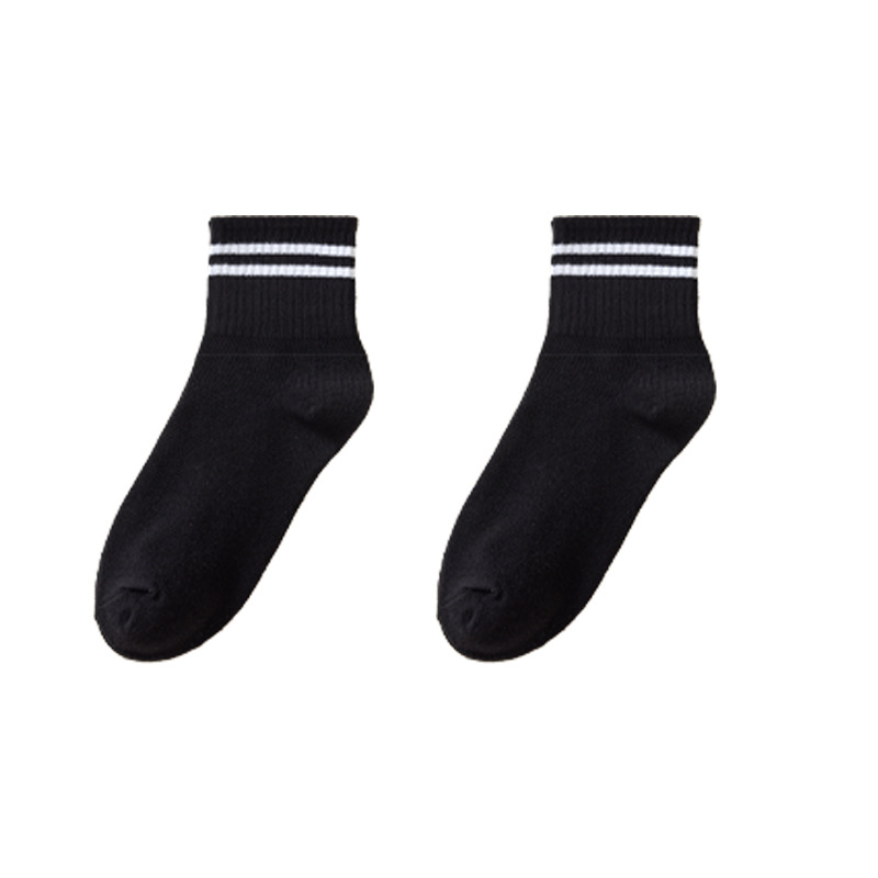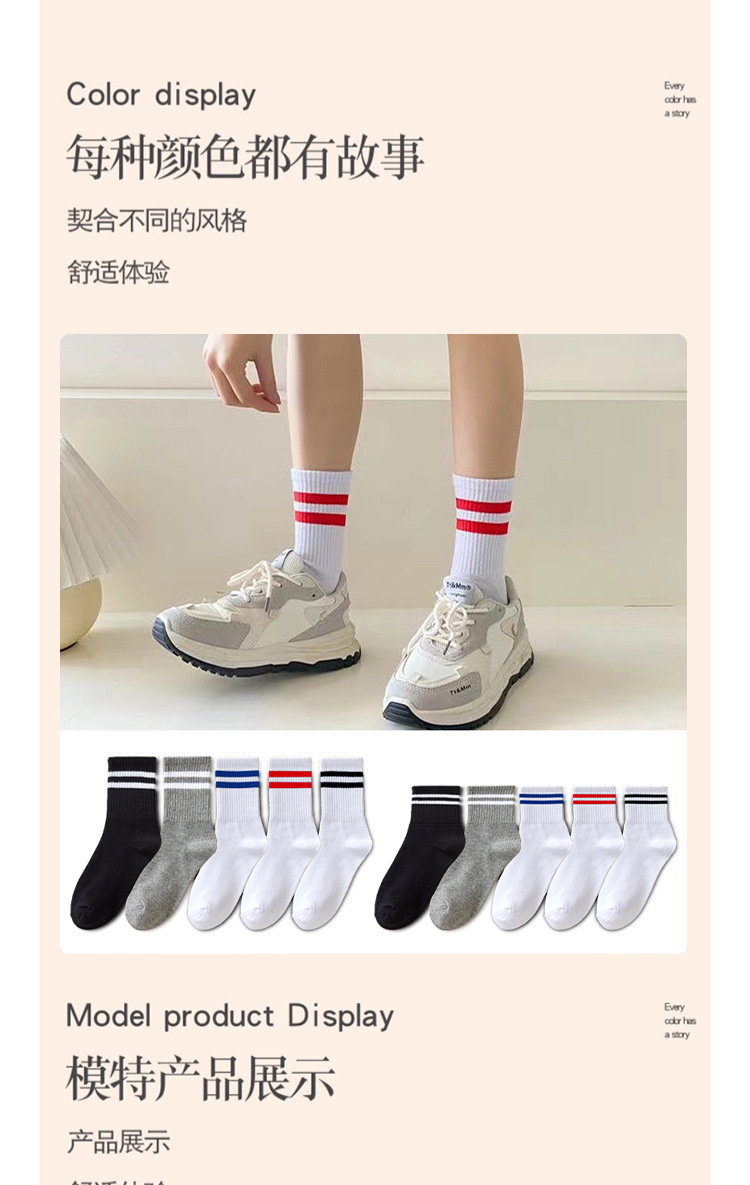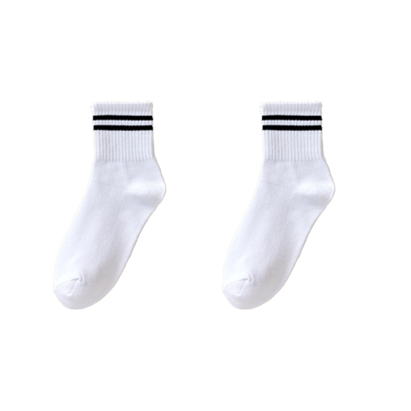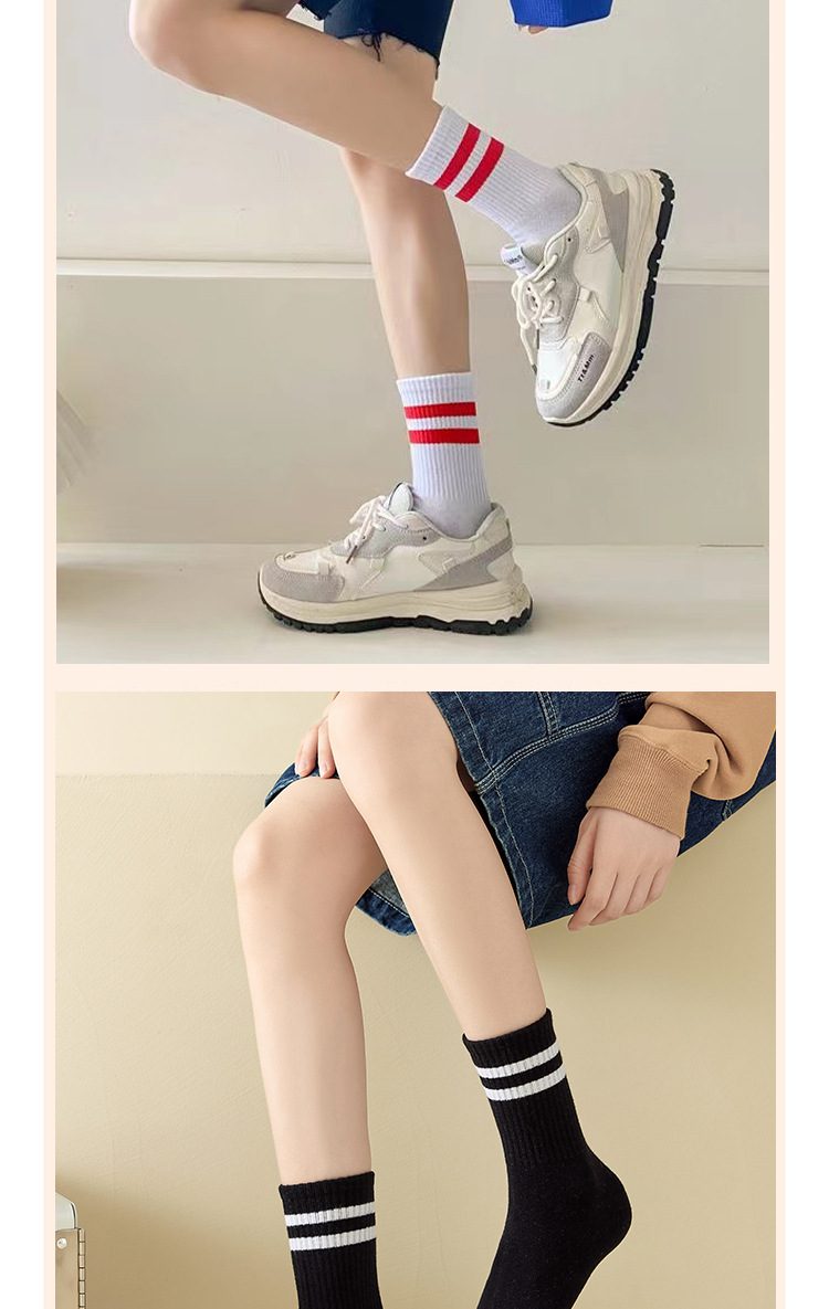 袜子女秋冬中筒袜女日系纯色堆堆袜ins潮束口运动袜二条杠长筒袜