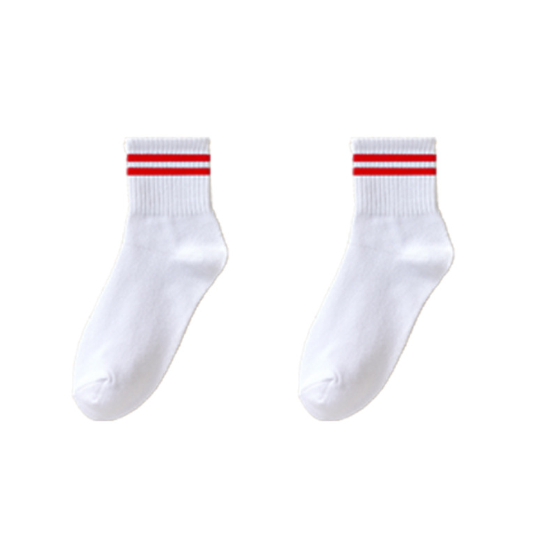 甜美简约中筒袜女卷边可爱樱桃百搭学院风竖条棉袜透气四季通用袜