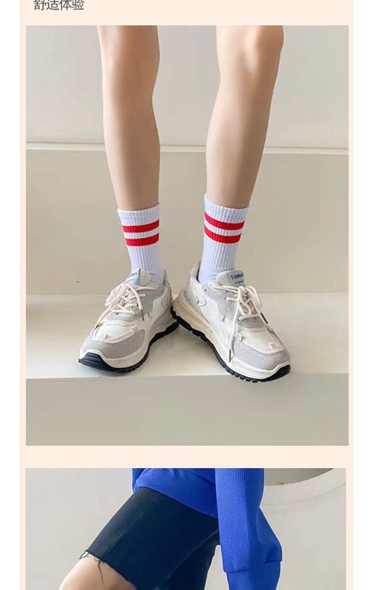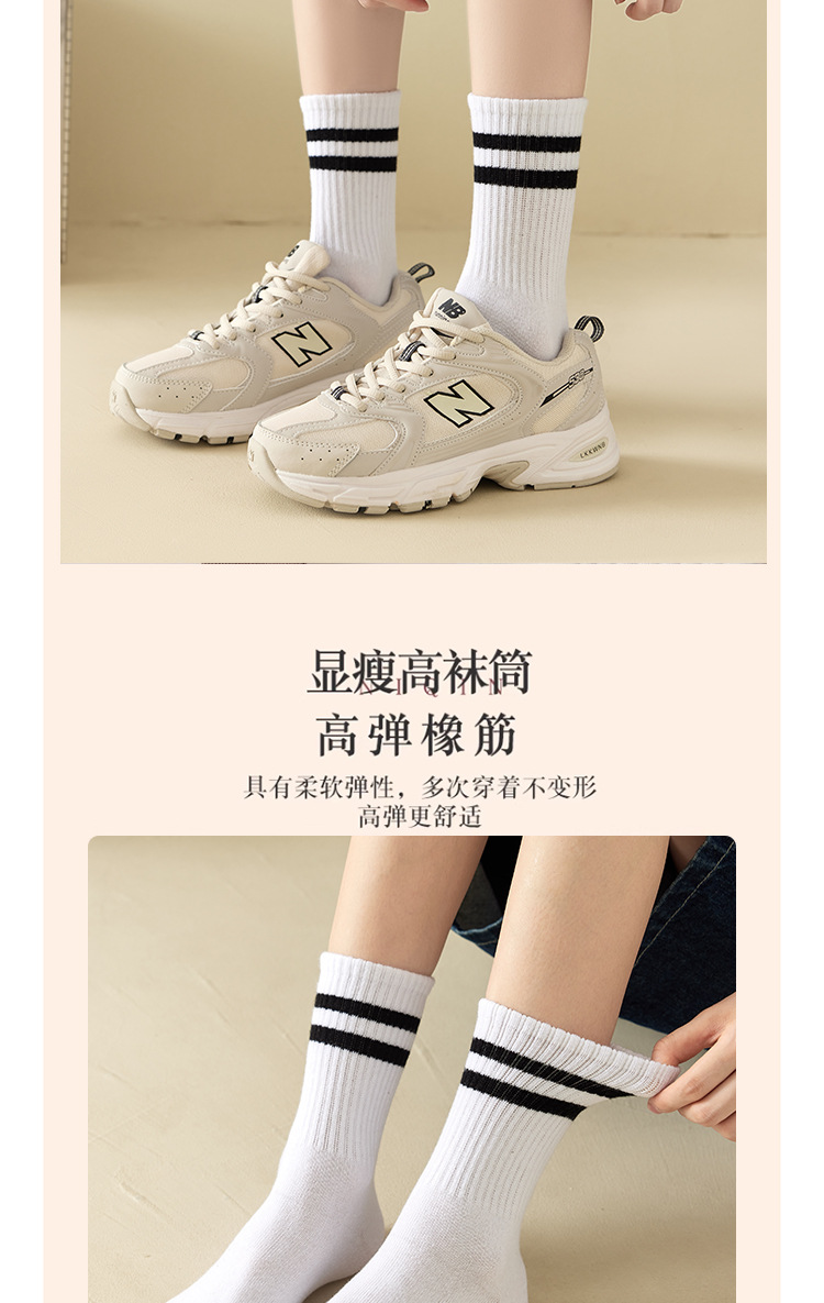 袜子女秋冬季条纹运动网红中筒小腿长袜街头配小白鞋鲨鱼裤ins潮