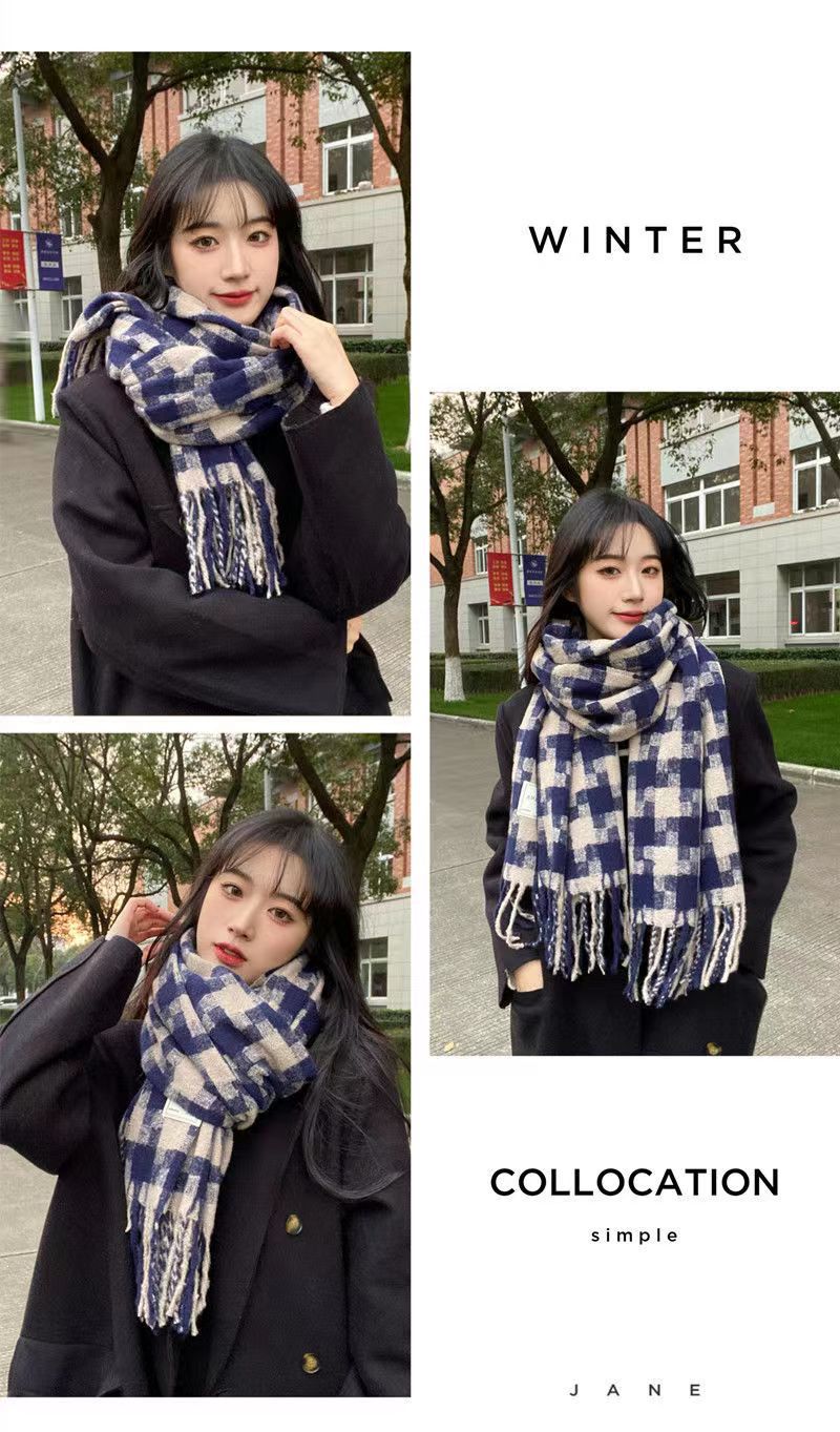 격자 무늬 스카프 여자 겨울 최고급 가을과 겨울 새로운 모조 캐시미어 스카프 남성을위한 모든 경기 두꺼운 따뜻한 니트 목도리스토어 가기