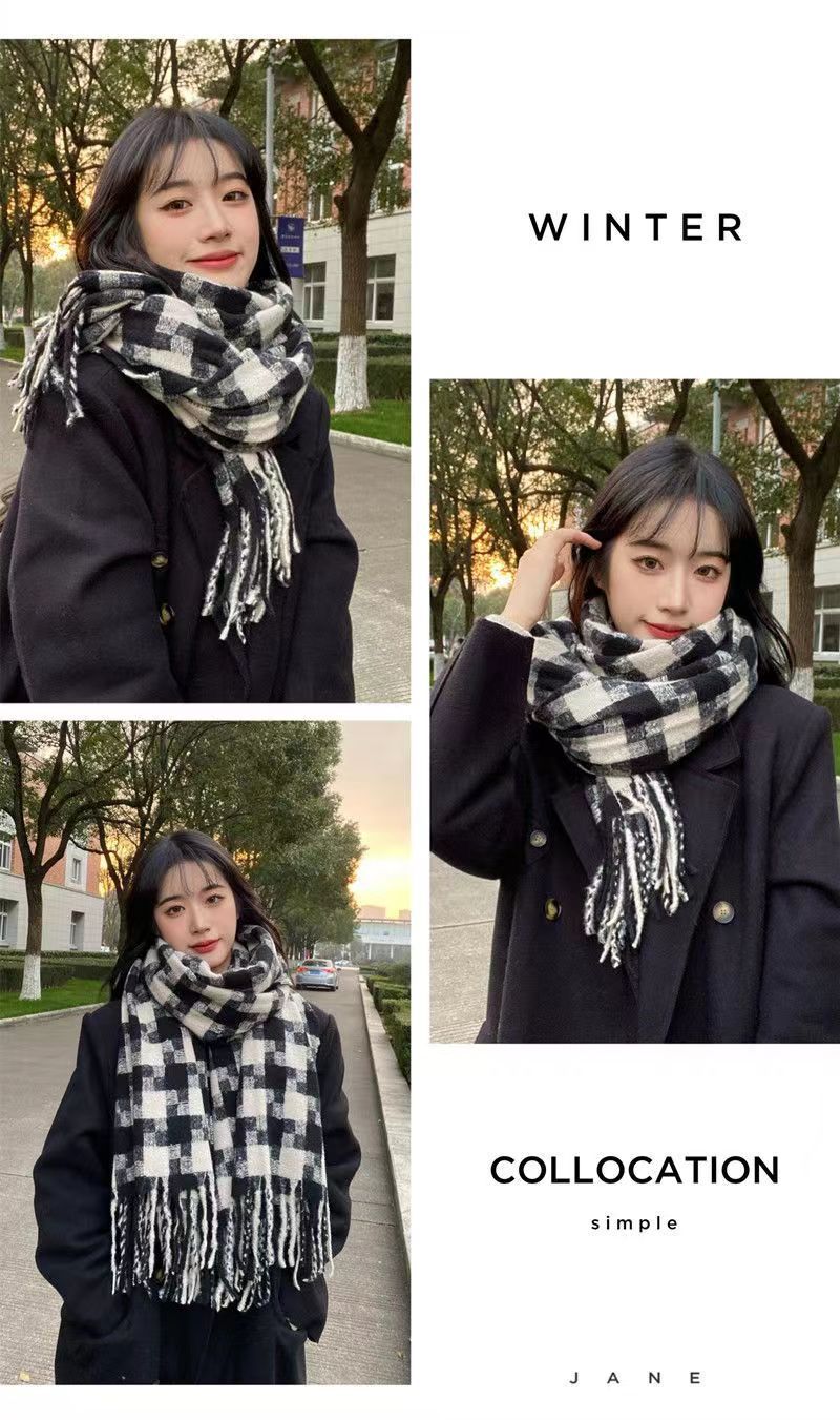 격자 무늬 스카프 여자 겨울 최고급 가을과 겨울 새로운 모조 캐시미어 스카프 남성을위한 모든 경기 두꺼운 따뜻한 니트 목도리
