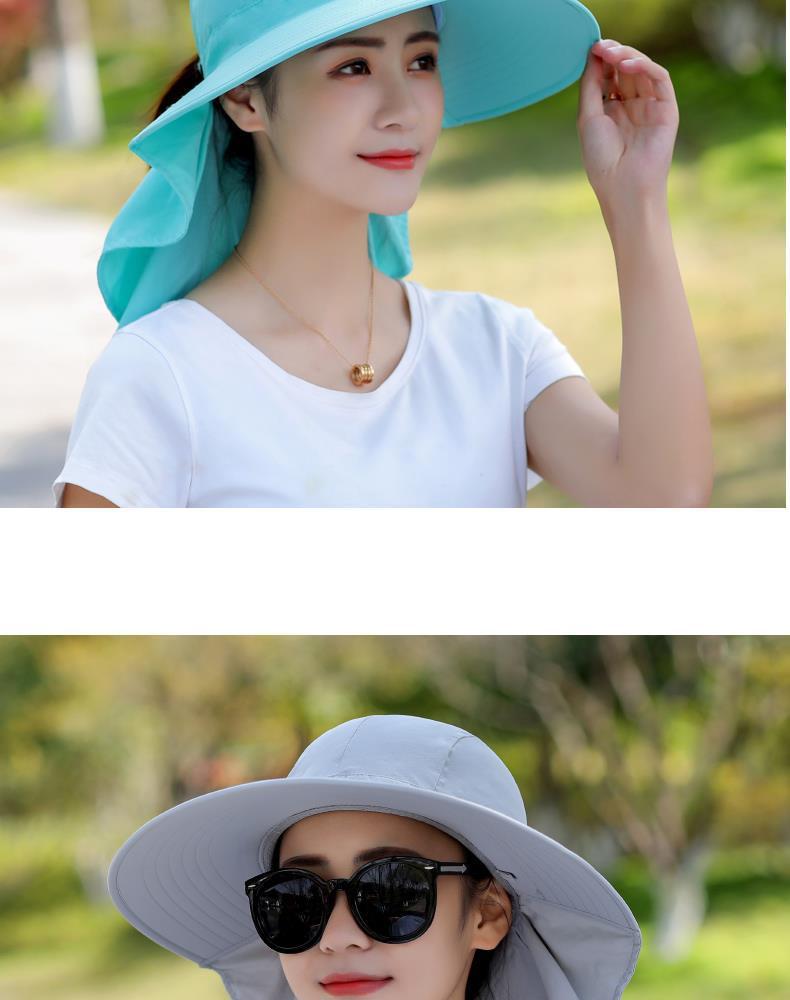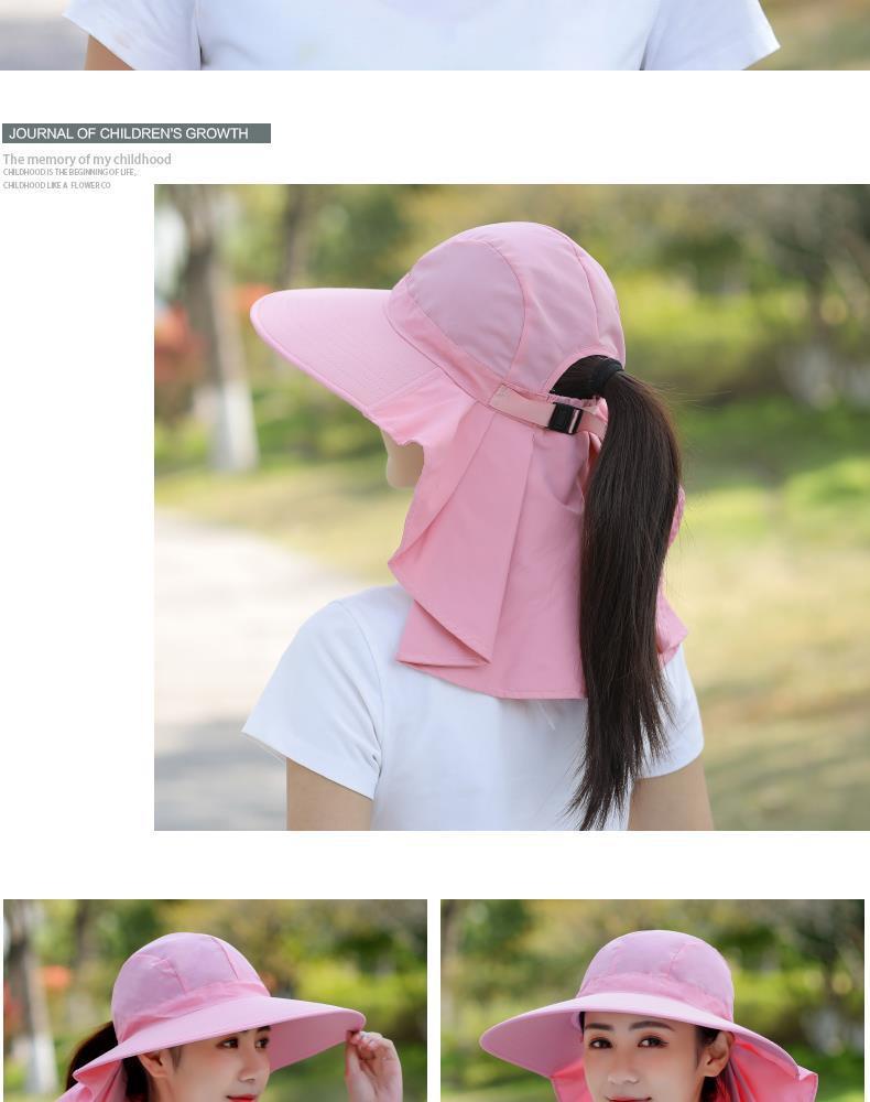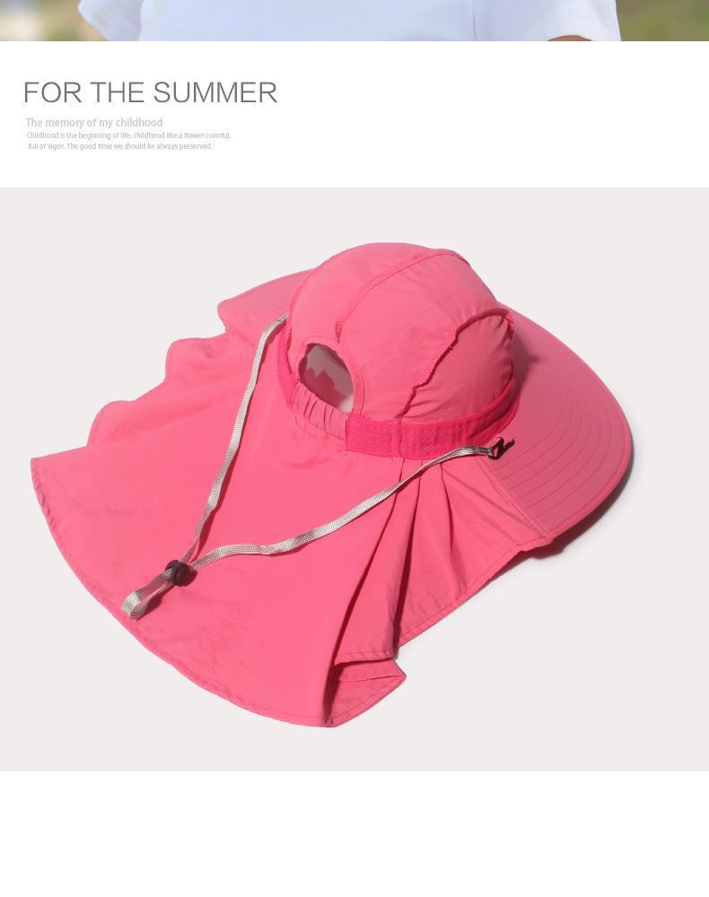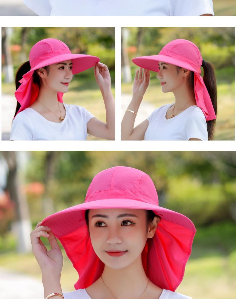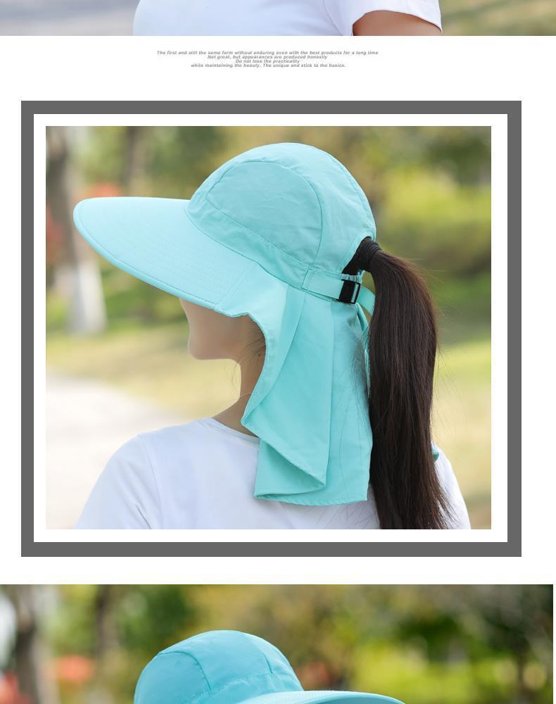 여름 모자 여성 포니 테일 태양 보호 모자 자전거 목 커버 여성 야외 접이식 큰 테두리 태양 모자스토어 가기