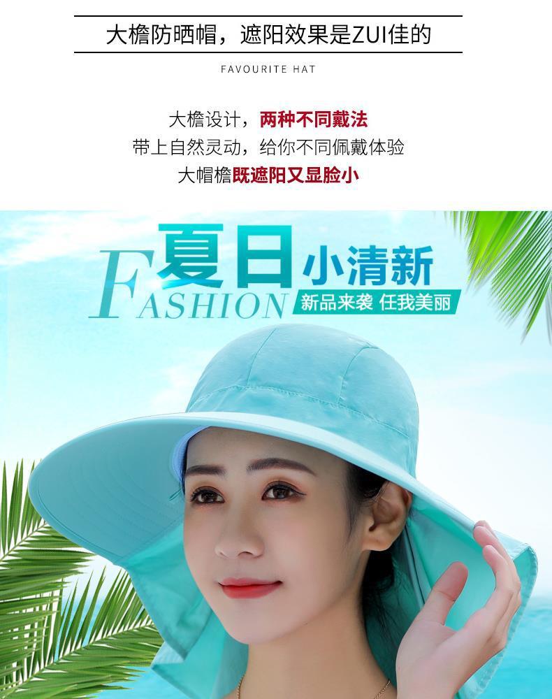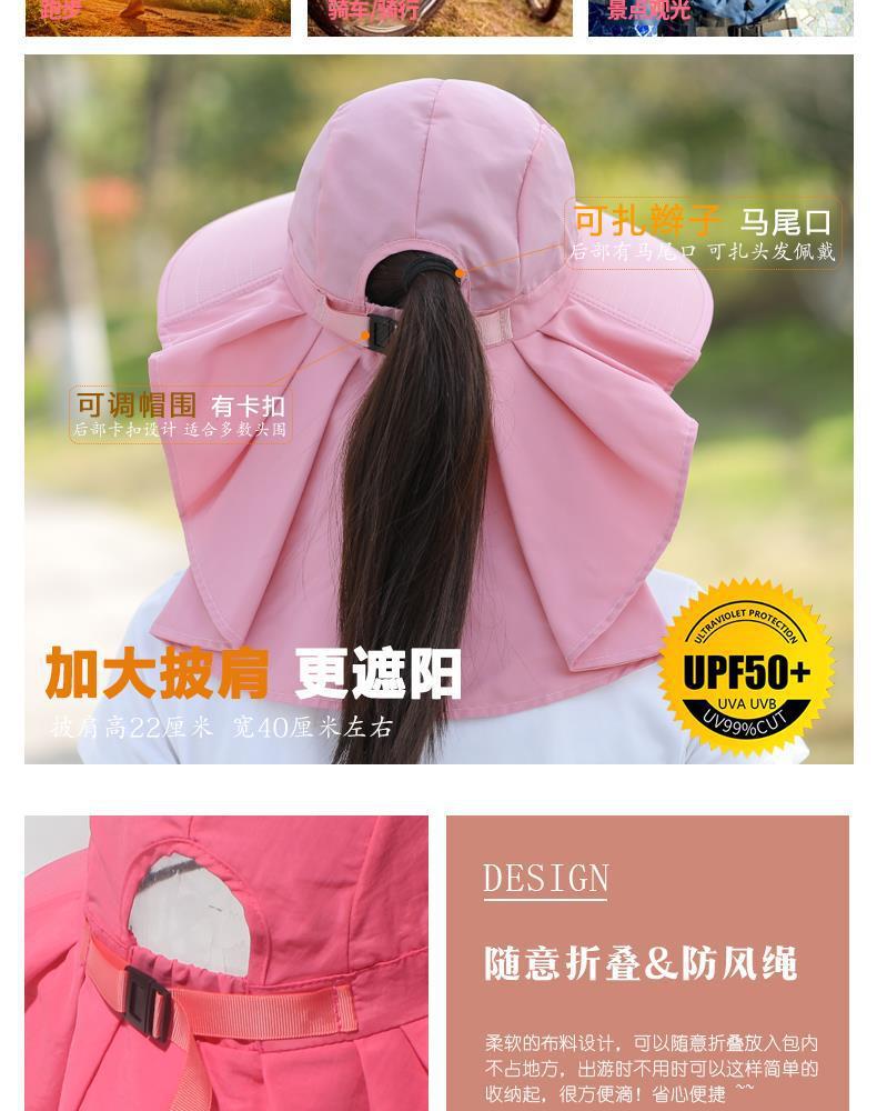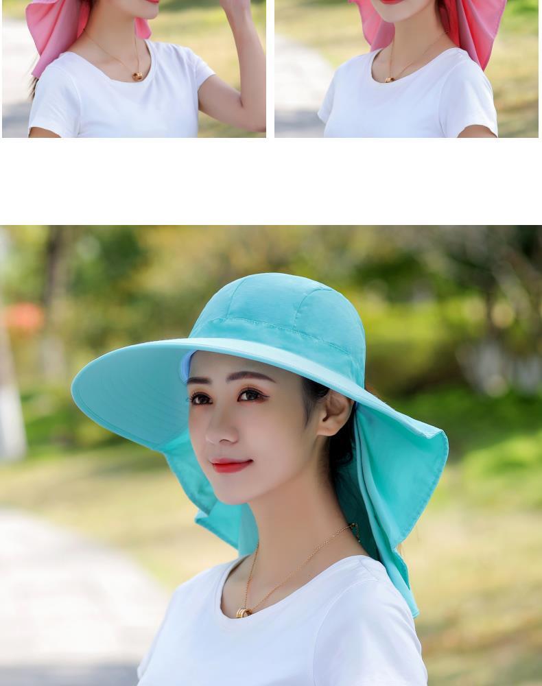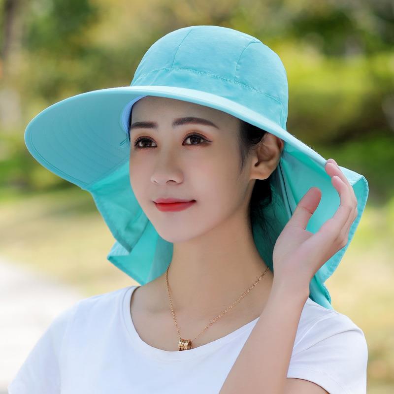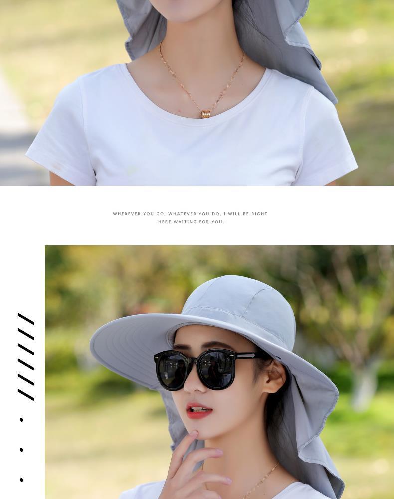여름 모자 여성 포니 테일 태양 보호 모자 자전거 목 커버 여성 야외 접이식 큰 테두리 태양 모자스토어 가기