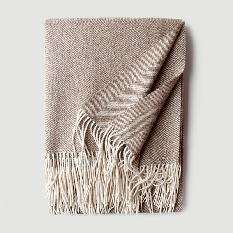 헤링본 무늬 울 담요 단색 프린지 혼합 양털 담요 여행용 홈 담요 에어컨 담요 숄