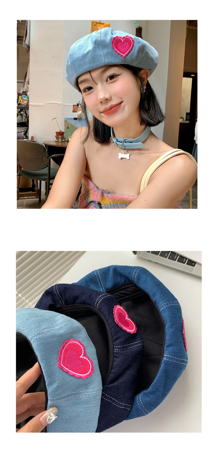 데님 사랑 새로운 베레모 웨스턴 스타일 여름 슬리밍 얼굴 달콤한 스타일 화가 모자 큰 머리 와이 모자
