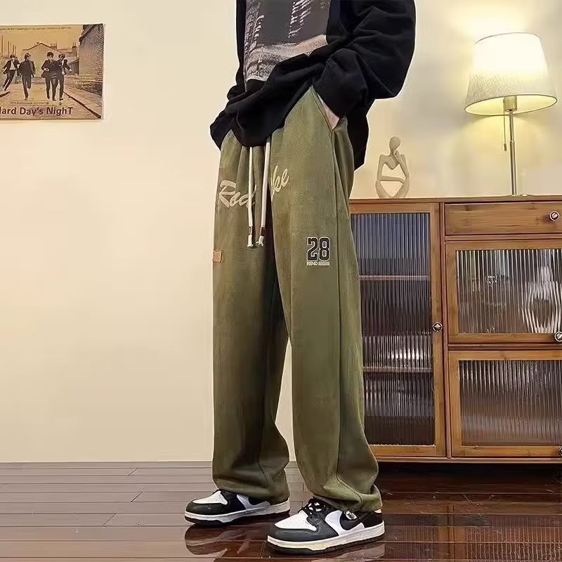 2023 새로운 아메리칸 스트라이프 팬츠 남성용 여름 통기성 얇은 스포츠 바지 스트레이트 아이스 실크 캐주얼 바지 소년스토어 가기