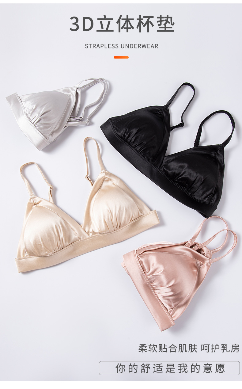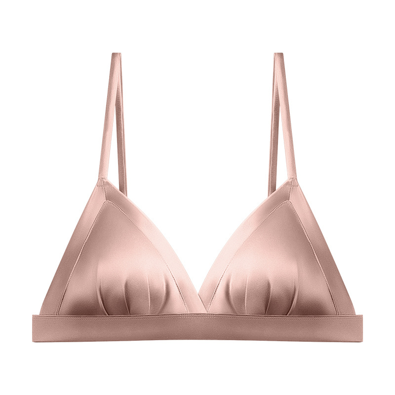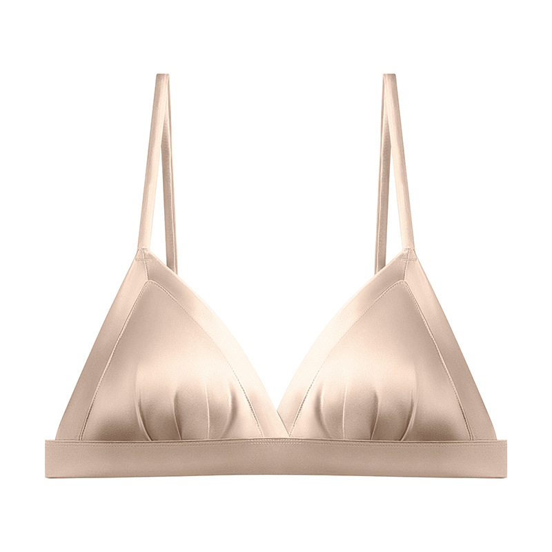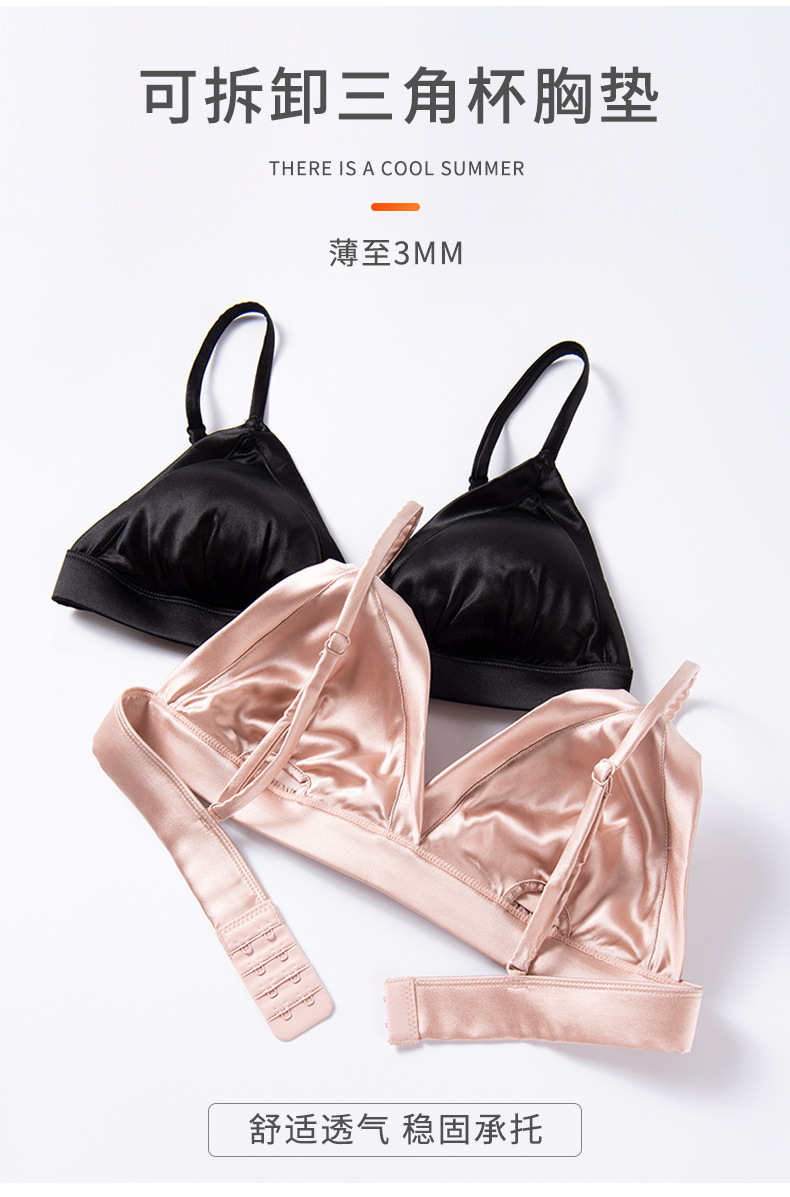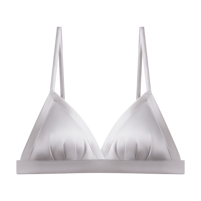 탱지 새틴 실크 프랑스 속옷 얇은 광택 삼각형 컵 작은 가슴 여성용 뽕나무 실크 브래지어 여름스토어 가기