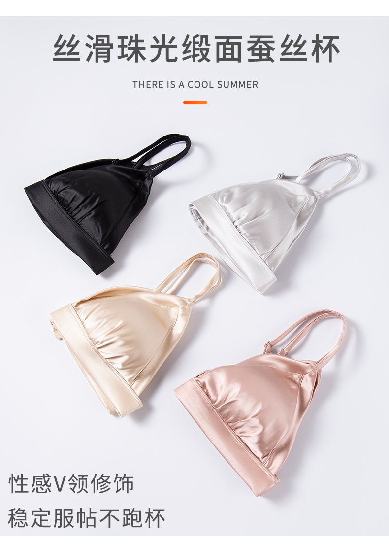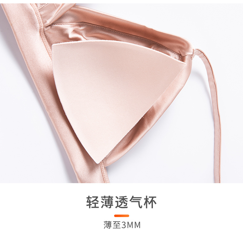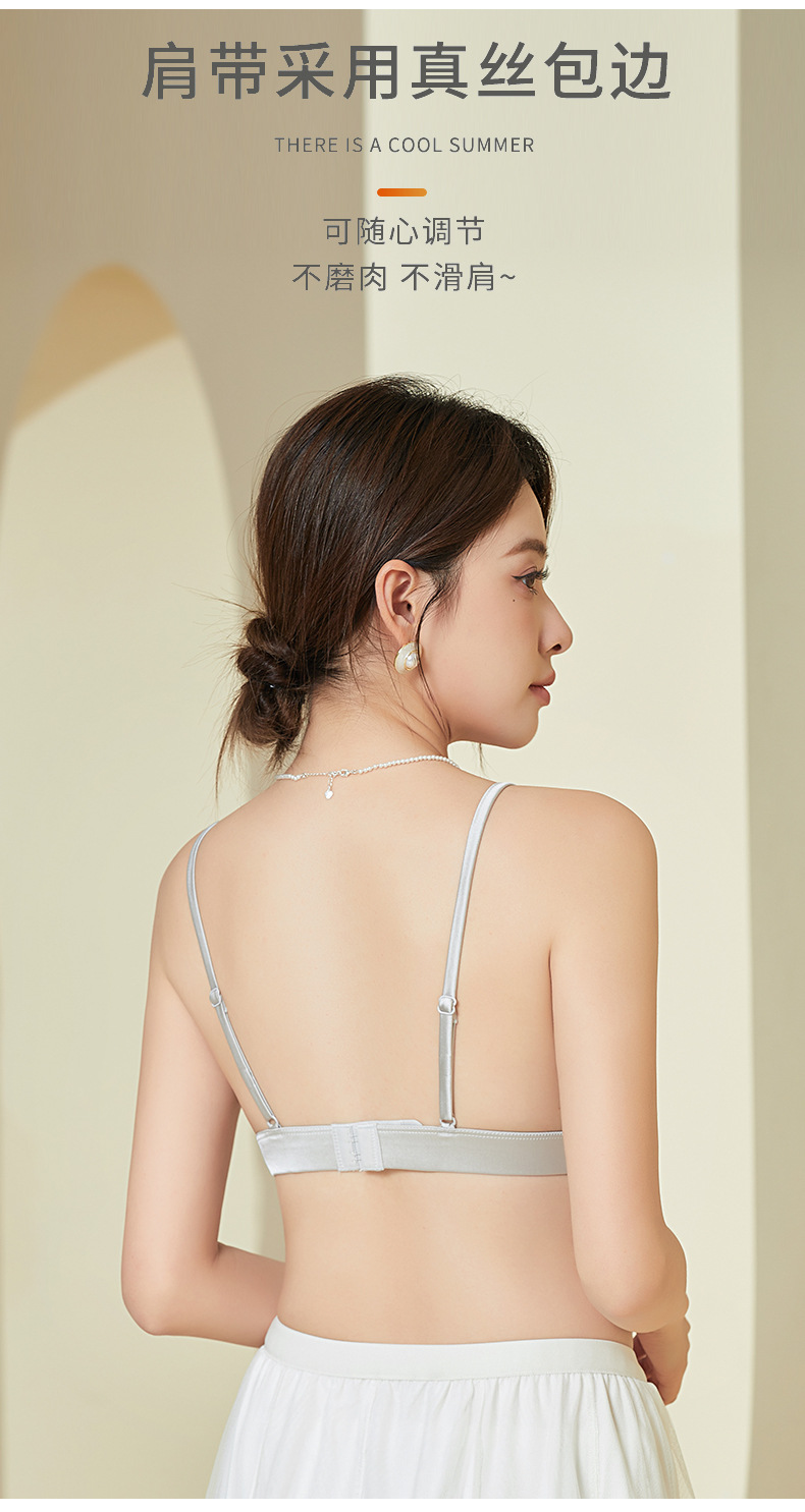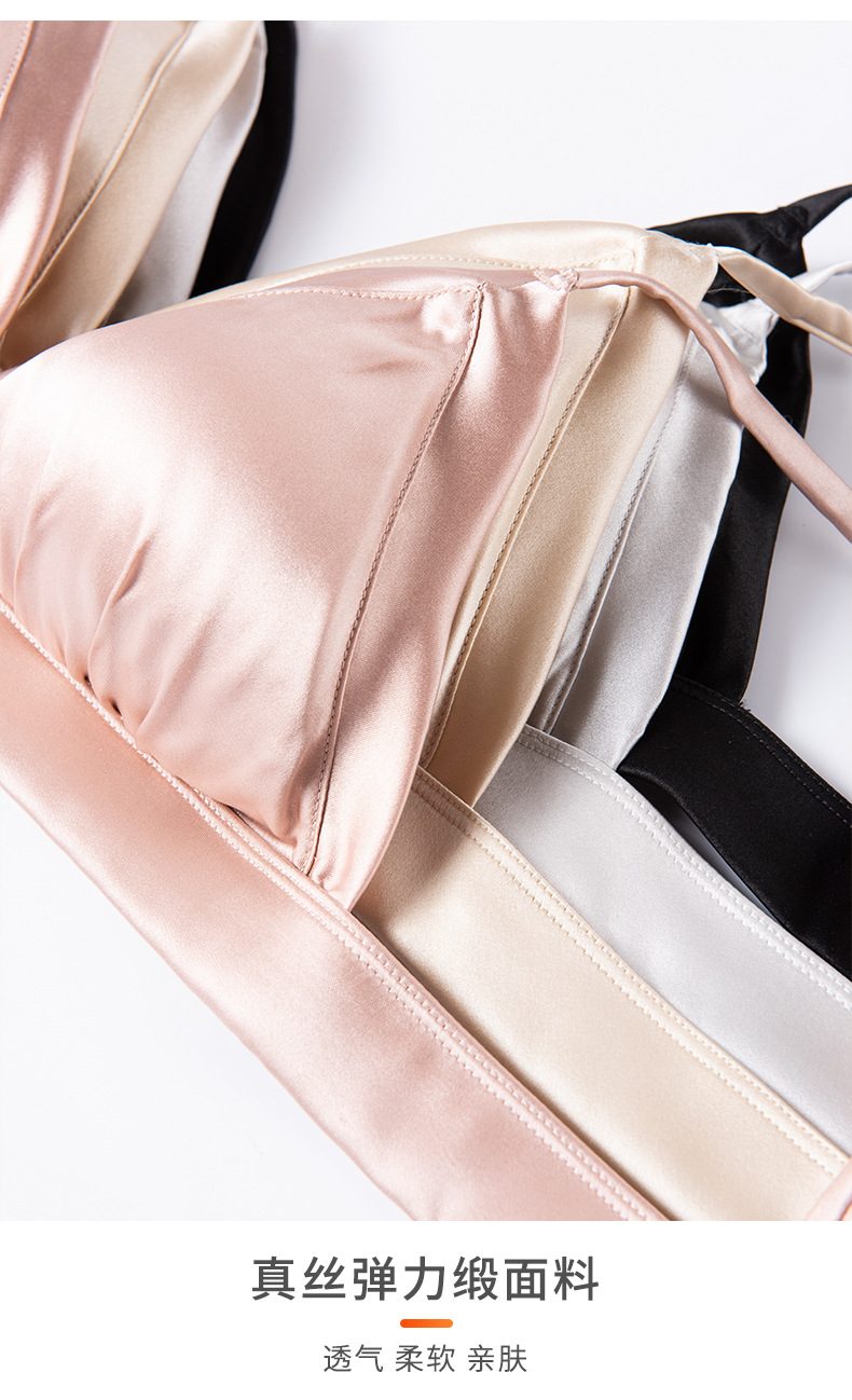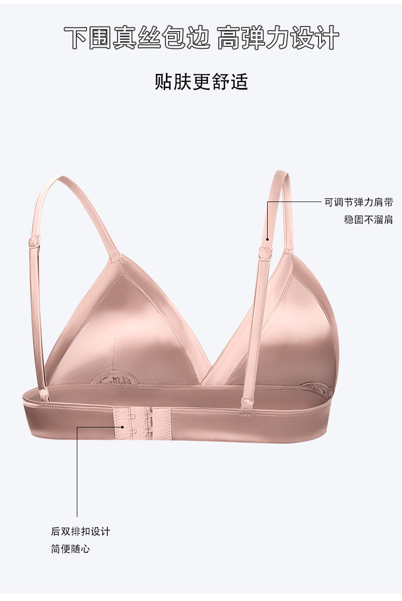 탱지 새틴 실크 프랑스 속옷 얇은 광택 삼각형 컵 작은 가슴 여성용 뽕나무 실크 브래지어 여름스토어 가기