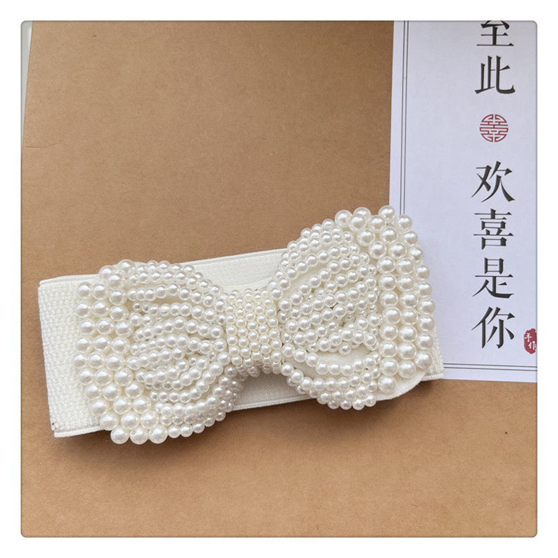 블랙 탄성 벨트 한국 스타일 여자의 진주 활 탄성 허리 커버 여자의 원피스 모든 일치 달콤한 장식