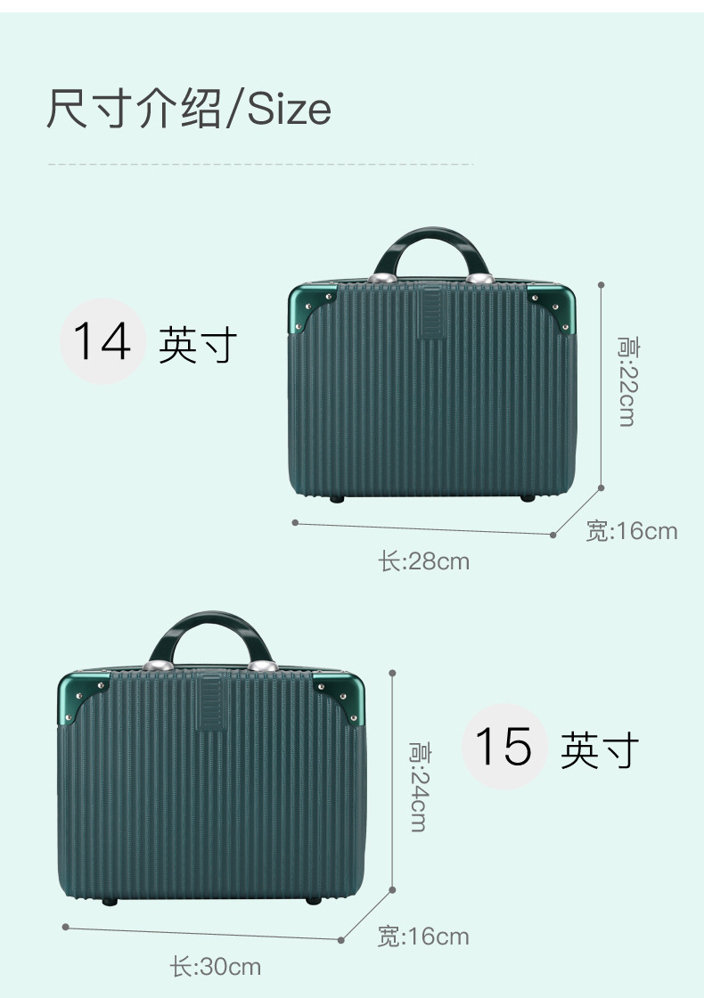 휴대용 작은 가방 새로운 화장품 가방 14 인치 귀여운 작은 경량 조합 자물쇠 가방 16 인치 여행 상자