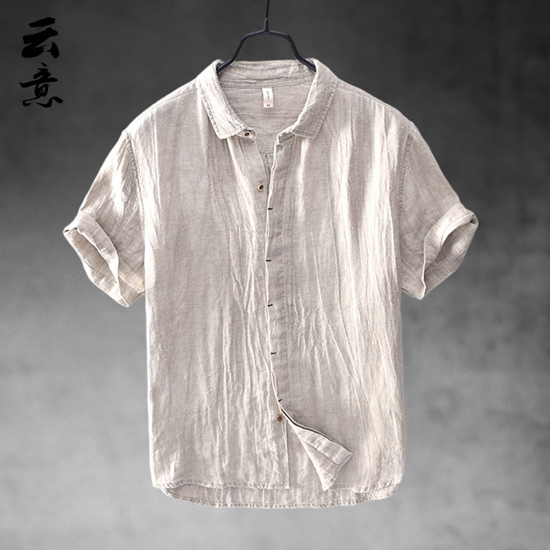 100 면 린넨 반팔 셔츠 남자의 중국 스타일 캐주얼 통기성 셔츠 린넨 얇은 반 소매 옷깃 탑스토어 가기