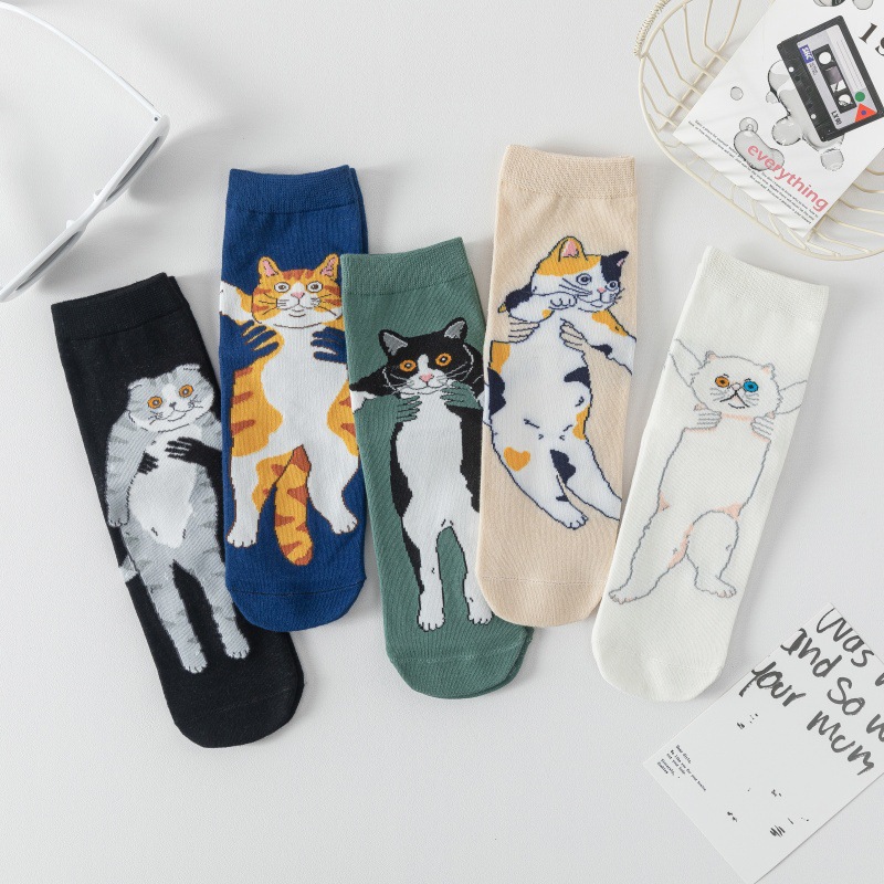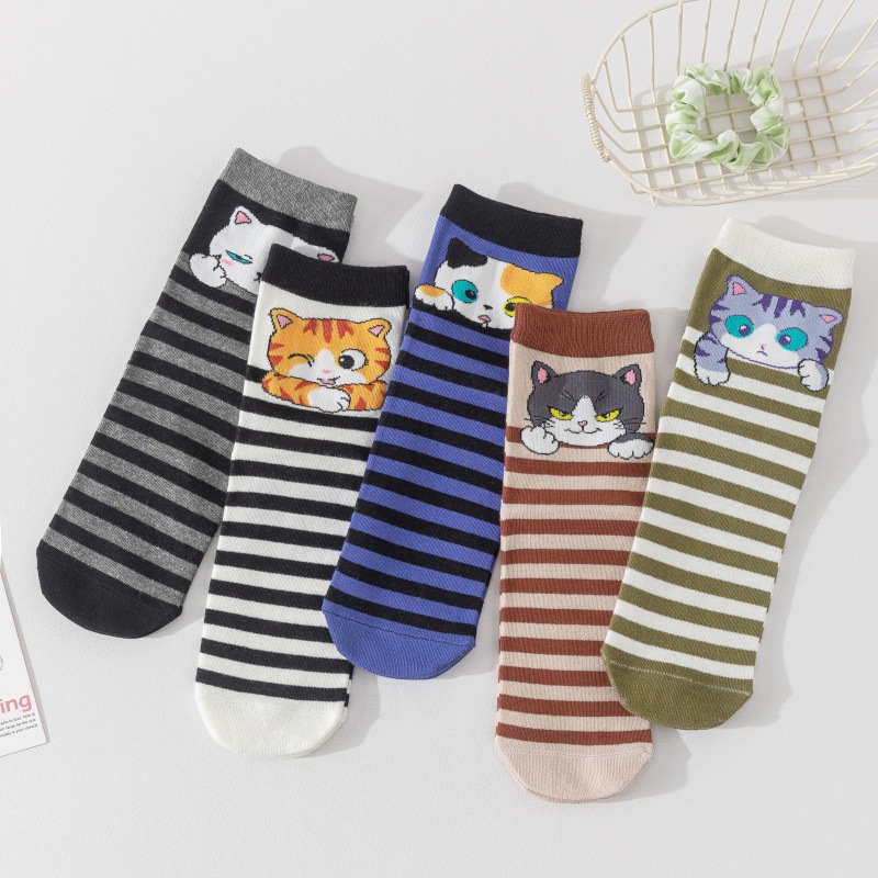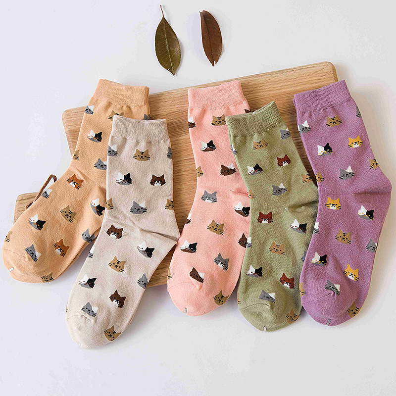 새로운 고양이 튜브 여성의면 양말 일본 귀여운 고양이 머리 만화 여성 양말 가을과 겨울 여성 양말 제조 업체 도매