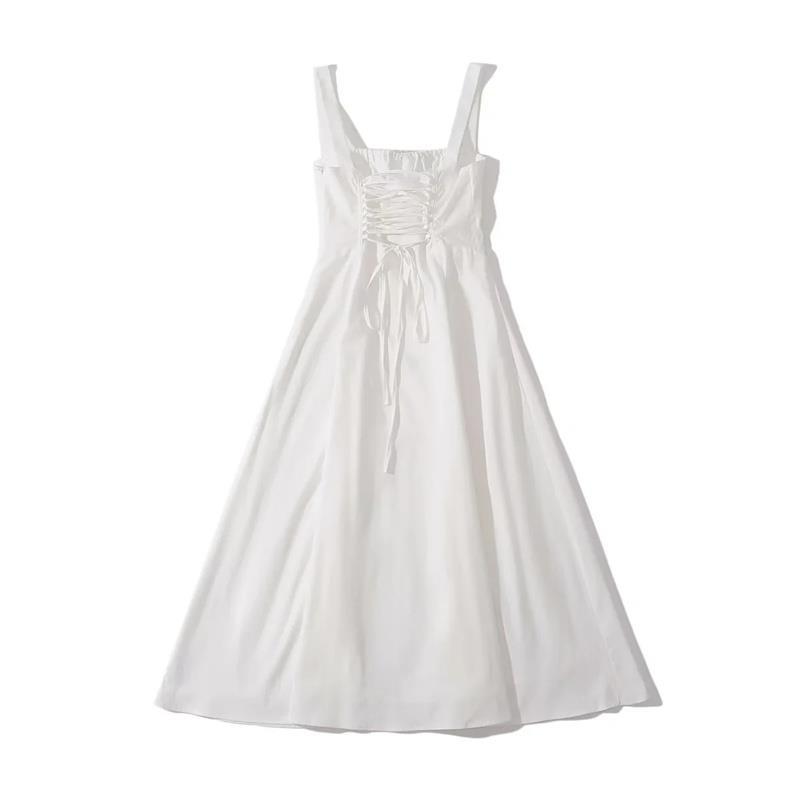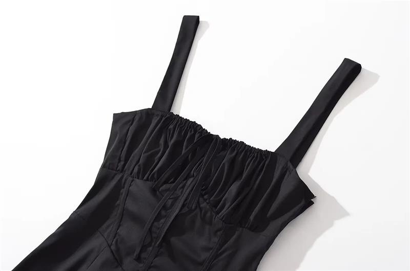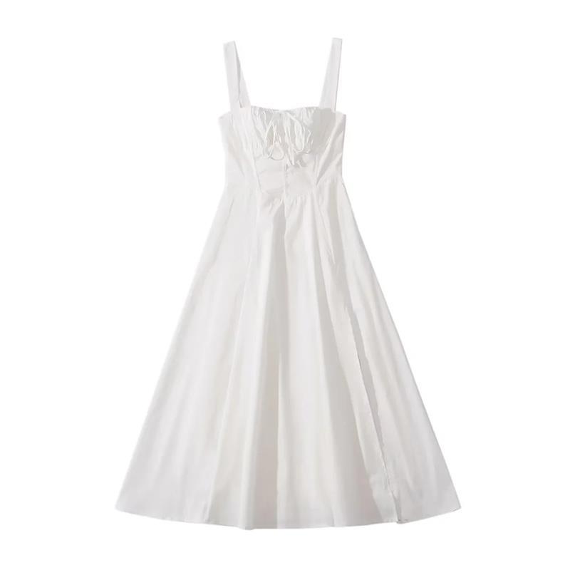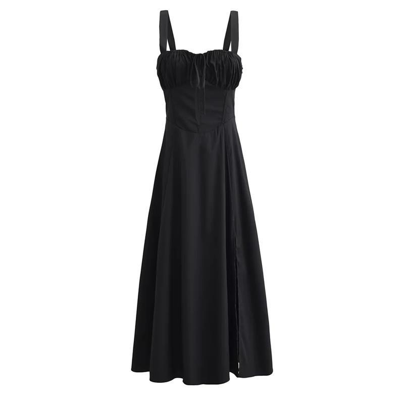 유럽과 미국 스타일 핫 걸 슬립 스커트 여름 드로스트링 레이스 업 칼라 허리 슬림 핏 스플릿 우아한 롱 스커트 원피스